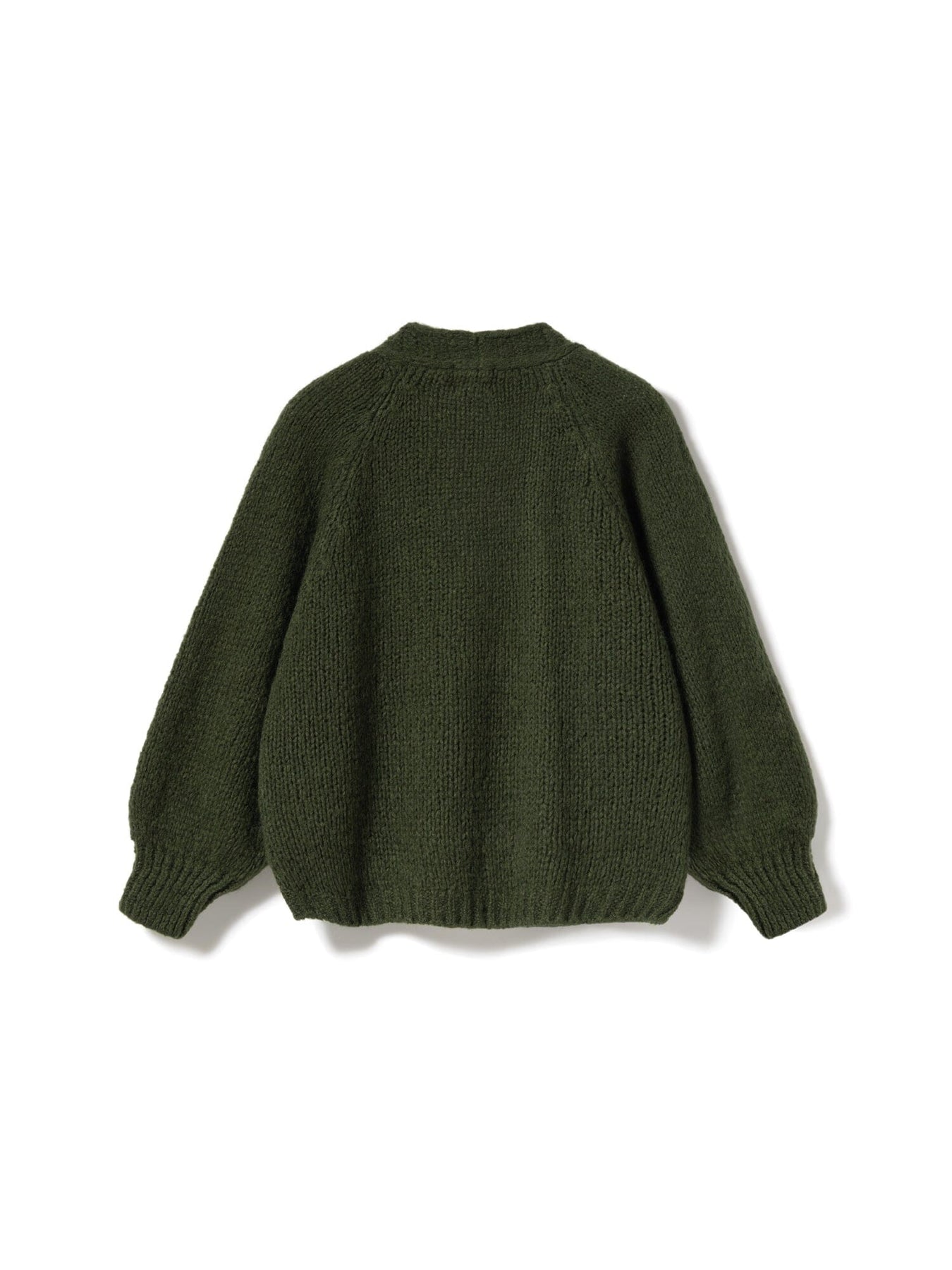 Stickad cardigan från Noella i mörkgrön. Den har en lös passform med puffärmar och öppen front, stickad i en blandning av akryl, ull, nylon och mohair.