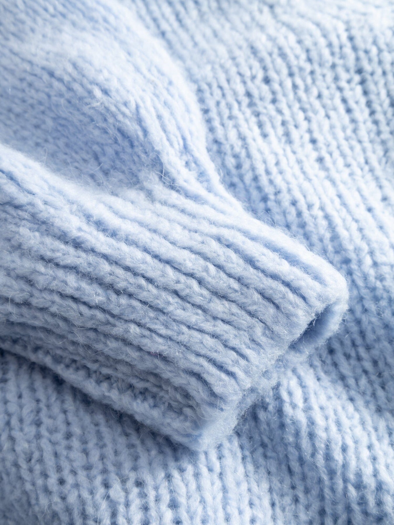 Ljusblå stickad cardigan från Noella med puffärmar och lös silhuett. Den mjuka stickningen har en öppen front utan knäppning och rund halsringning.