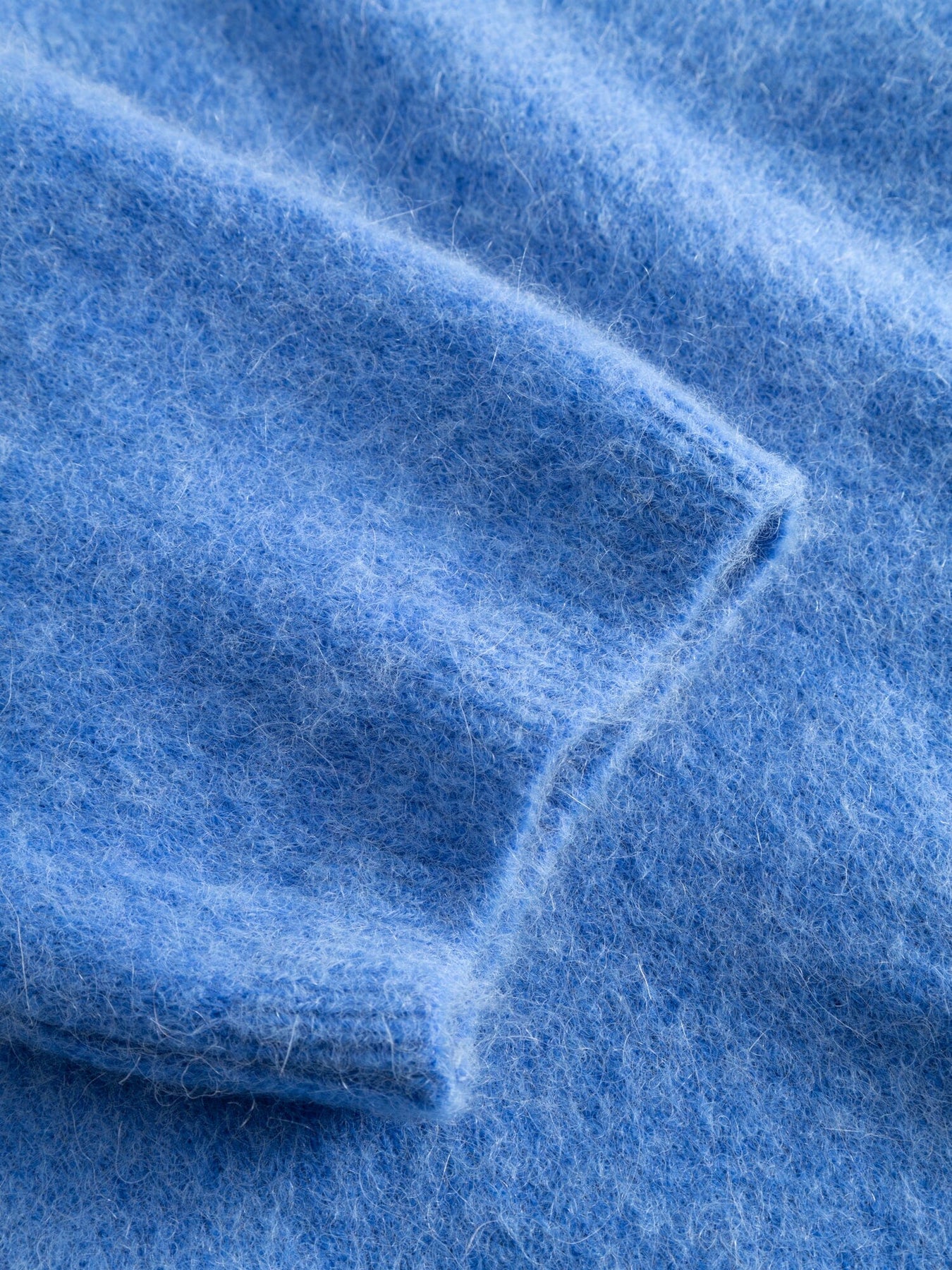 Stickad cardigan från Noella i ljusblått. Den mjuka mohairblandningen ger en fluffig textur, och designet har rund hals med knapplåsning fram.