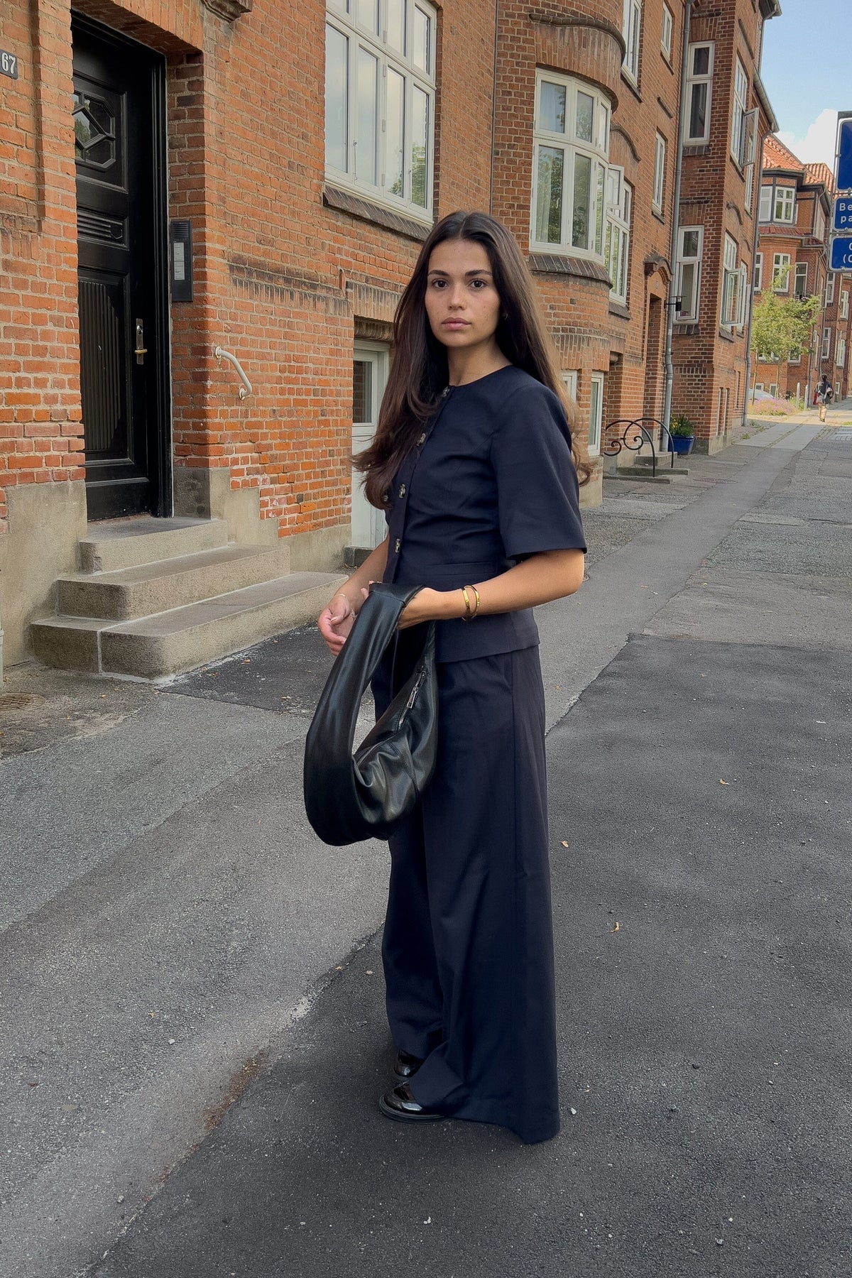 Svart blazer från Noella med korta ärmar och rund halsringning. Stora knappar pryder framsidan, och två sidofickor ger blazern en praktisk design.