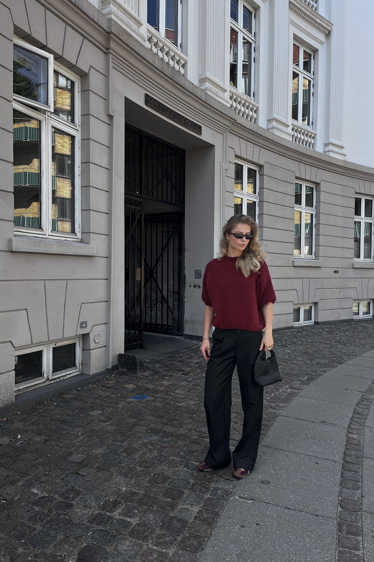 Stickad tröja från Noella i färgen Dusty Mahogany, en mörkröd nyans med bruna undertoner. Tröjan har en lös passform och trekvartsärmar.
