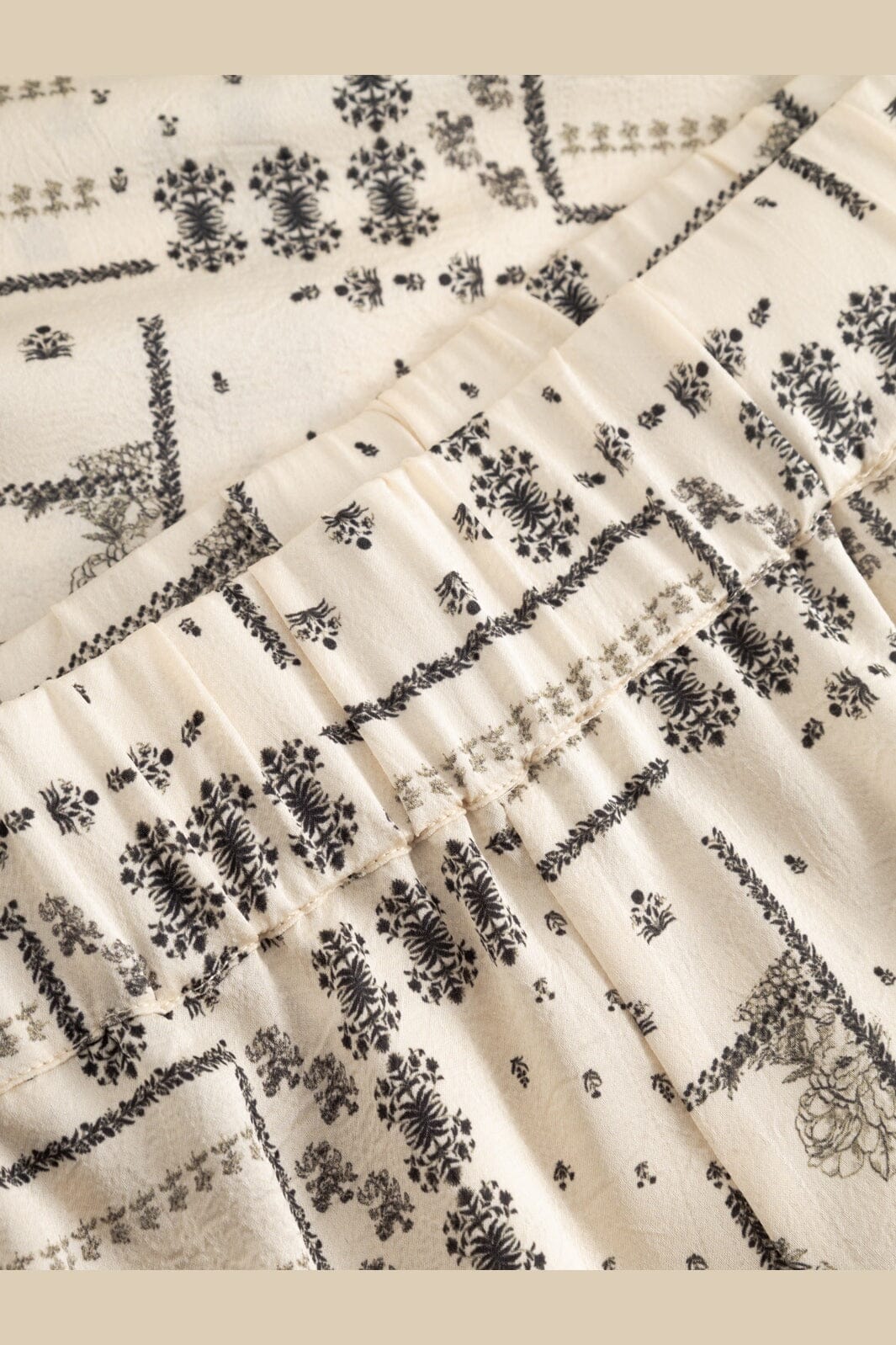 Byxor från Noella i en elfenbensfärgad nyans med geometriskt och blommigt print. Byxorna har vida ben och hög midja.