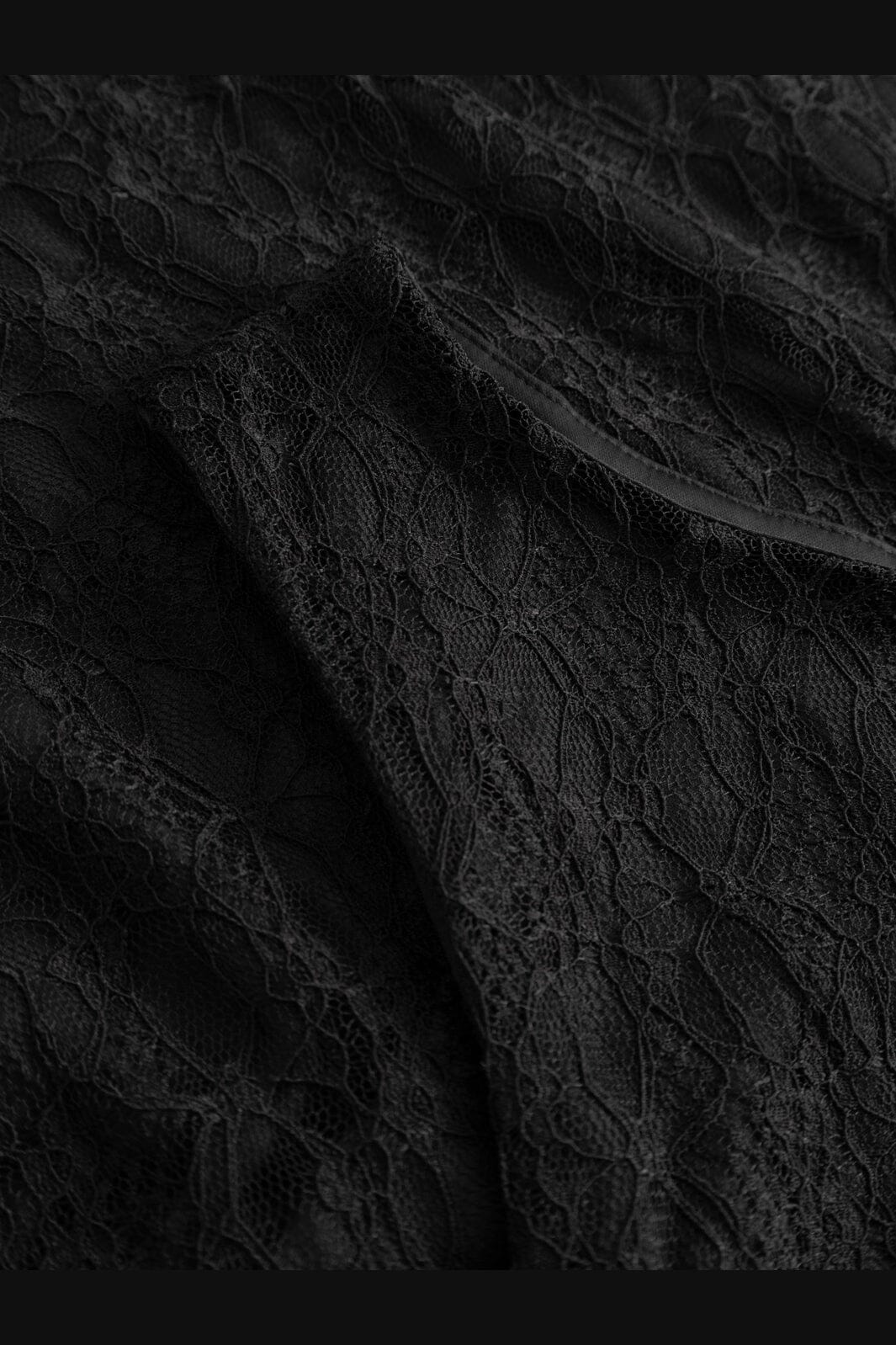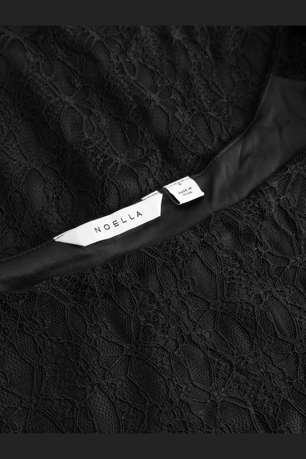 Svart klänning från Noella i spets. Klänningen passar till bröllop, fester och formella tillfällen med sin off-shoulder-design och asymmetriska skärning.