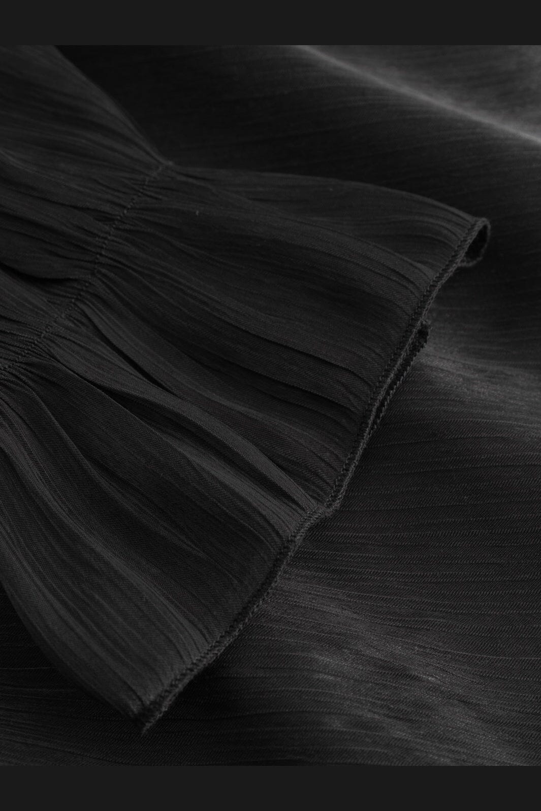 Svart blus från Noella med off-shoulder-design och tunna axelband. Blusen har långa ärmar med elastiska muddar och en stor volang vid bysten.