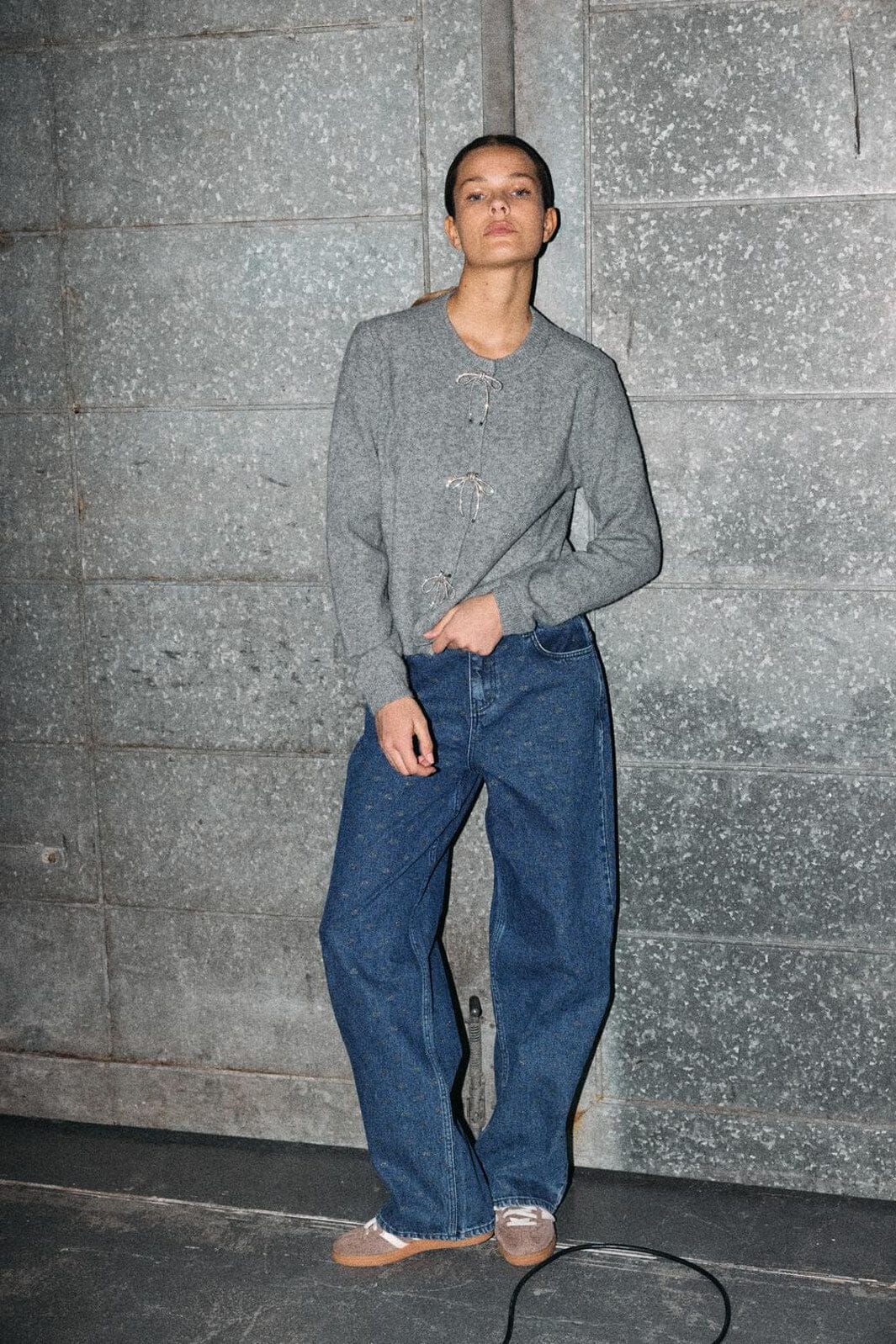 Noisy May Nmbrayana L/S Bow Trim Knit Cardigan Färg: 4903272 Ultimate Grey Sequin Bow