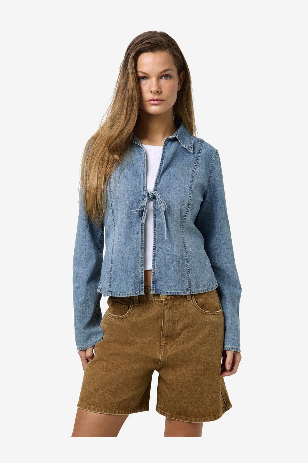 Noisy May Nmmaisy L/S String Denim Shirt Bs031Lb Färg: 4801537 Light Blue Denim
