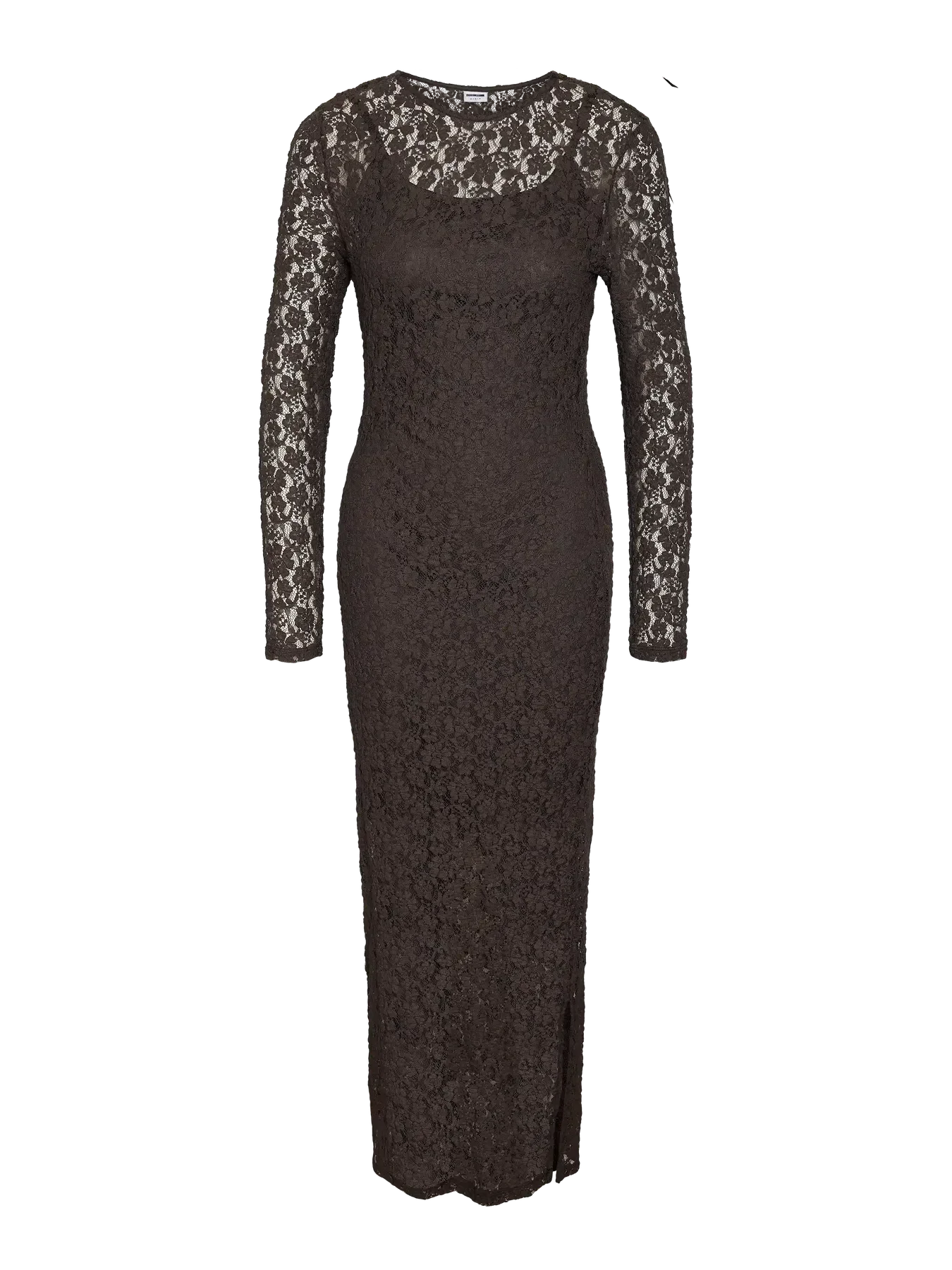 Noisy May Nmmiriam L/S Maxi Lace Dress Färg: 5064757 Chocolate Brown