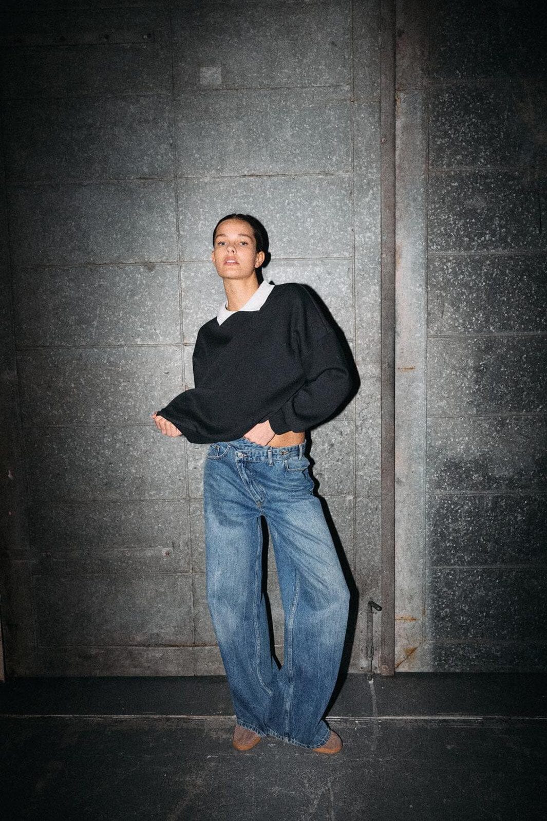 Breda jeans från Noisy May i mellanblå denim med kryssdetalj fram. Den breda passformen och den klassiska denimtvätten ger byxorna ett avslappnat uttryck.