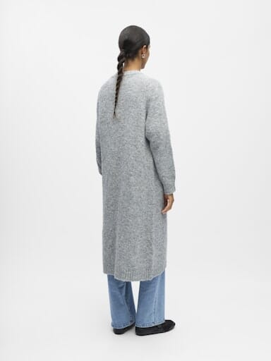 Object Objmilu Ls Lo Long Knit Cardigan Färg: 4789463 Medium Grey Melange