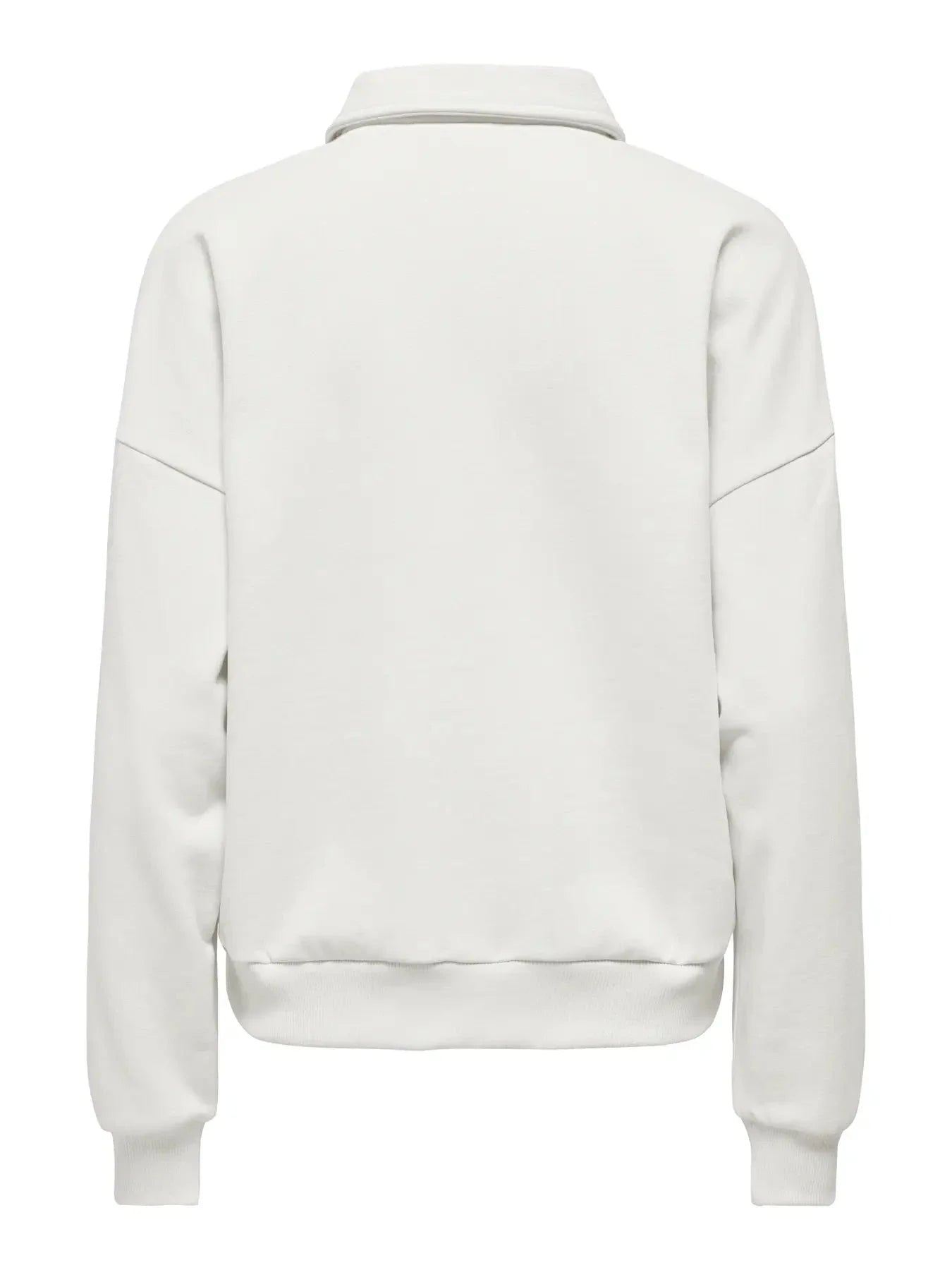 Vit polo-sweatshirt från Only med dekorativa guldfärgade knappar under kragen. Sweatshirten har långa ärmar och ribbstickade kanter.