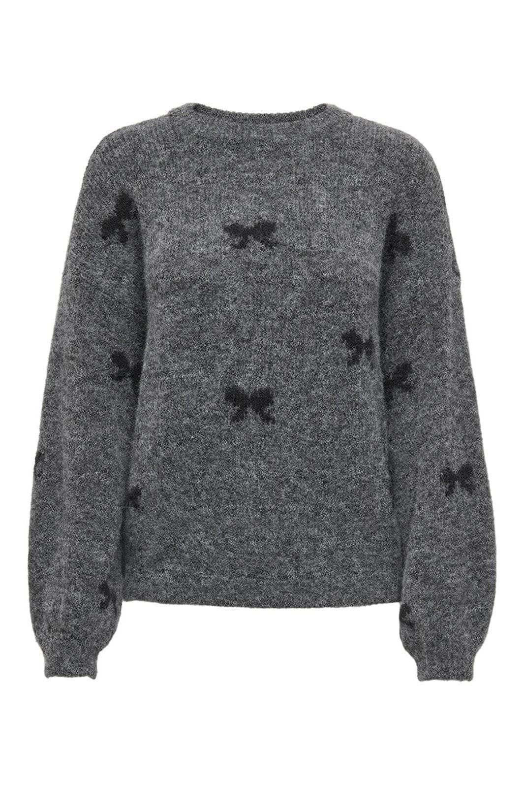Only Onlbrunhilda Life Ls Bow O-Neck Knt Färg: 4947221 Medium Grey Melange Black/Mini Bow