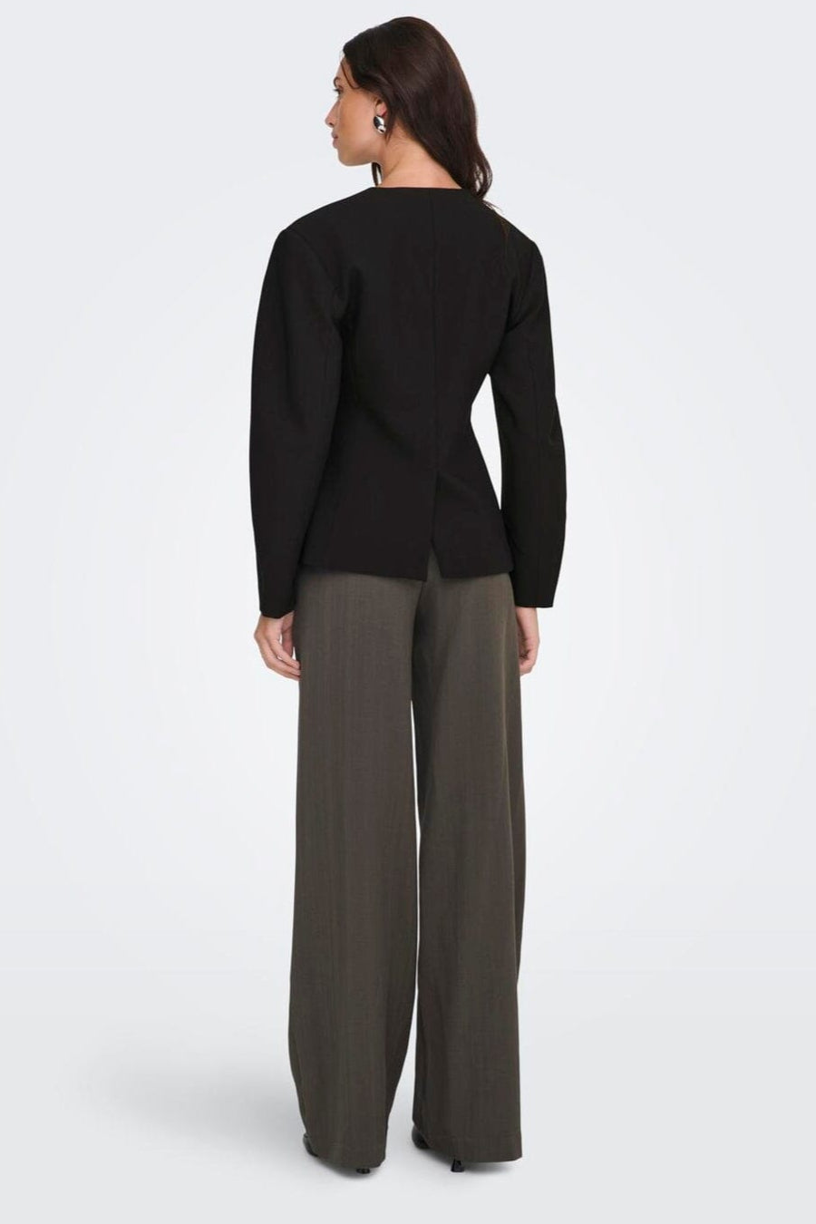 Svart blazer från Only med V-ringning och volymärmar. Blazern har en enkel knapp framtill och två praktiska fickor. Den reguljära passformen ger god rörelsefrihet.