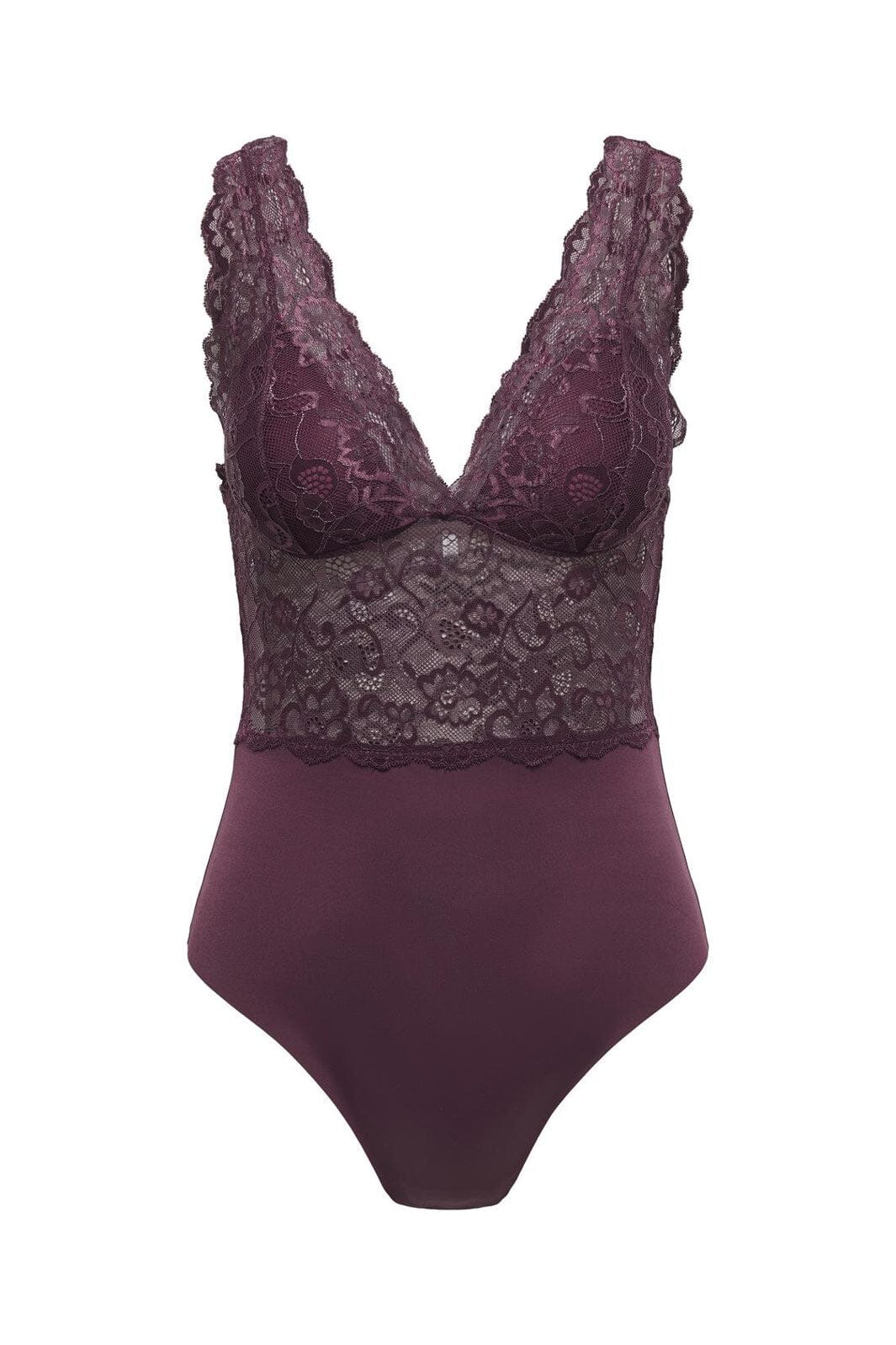Only Onlchloe Glitter Lace Bodystocking Acc Färg: 4868948 Winetasting Silver-Lurex