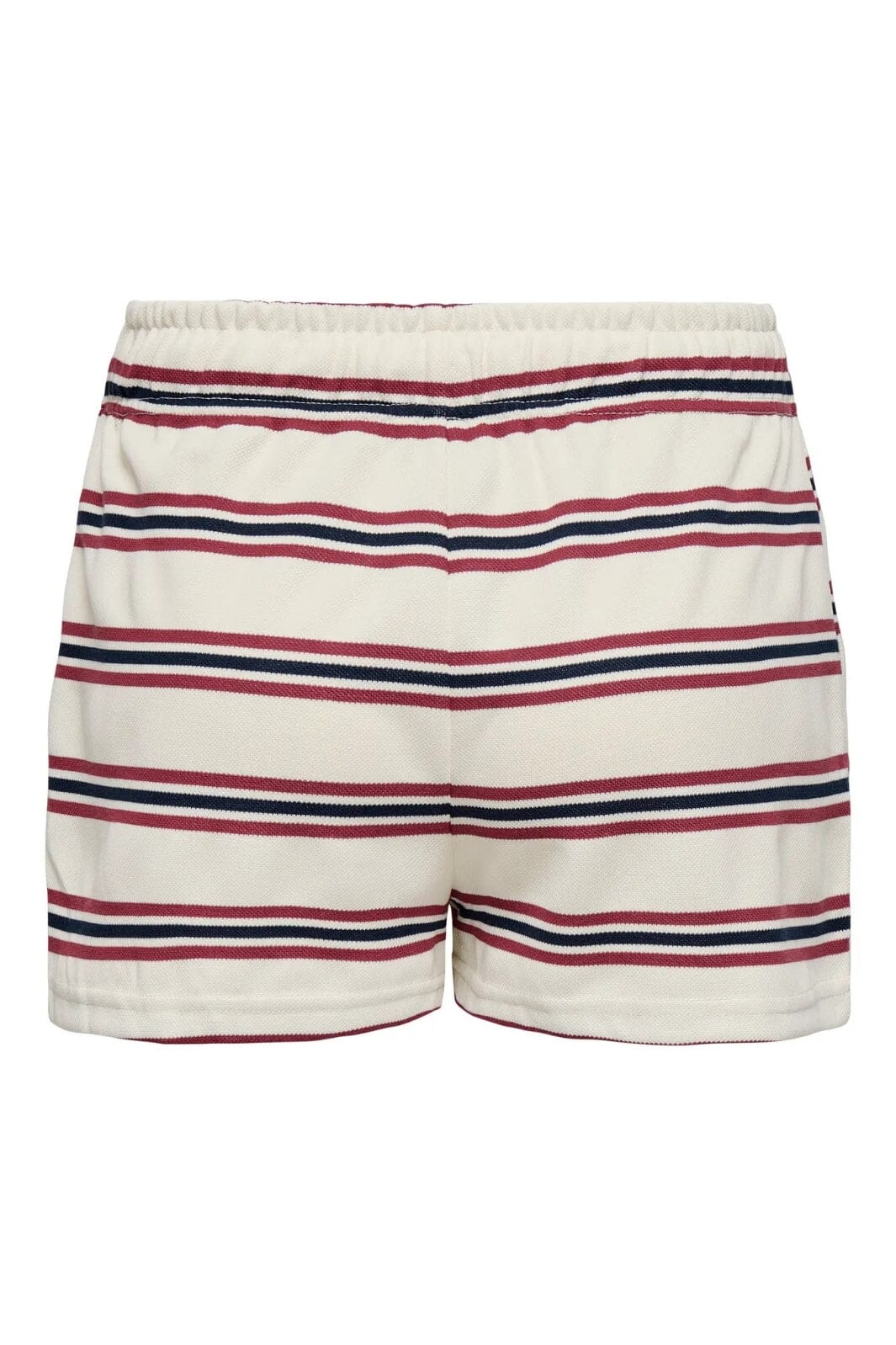 /Randiga shorts från Only med lös passform. Shorts har en maritim design i vit grundfärg med bordeaux och mörkblå ränder. Den lösa modellen ger god rörelsefrihet.