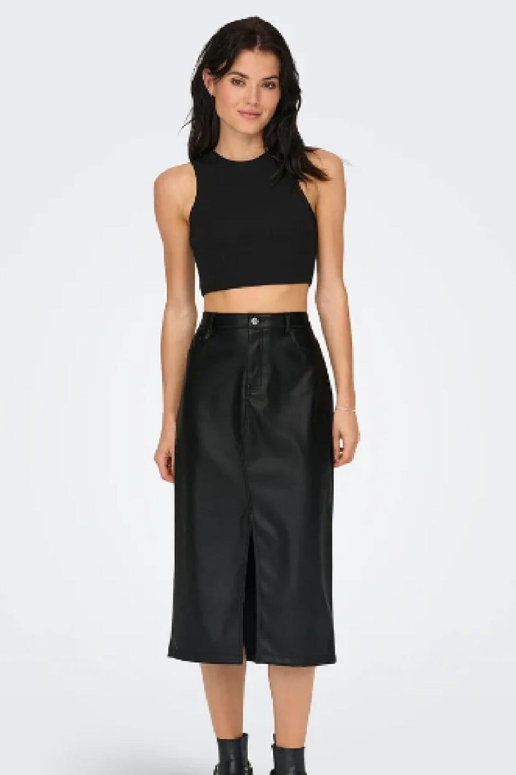 Only Onlkiri Lo Slit Faux Lea Skirt Cc Färg: 4512619 Black
