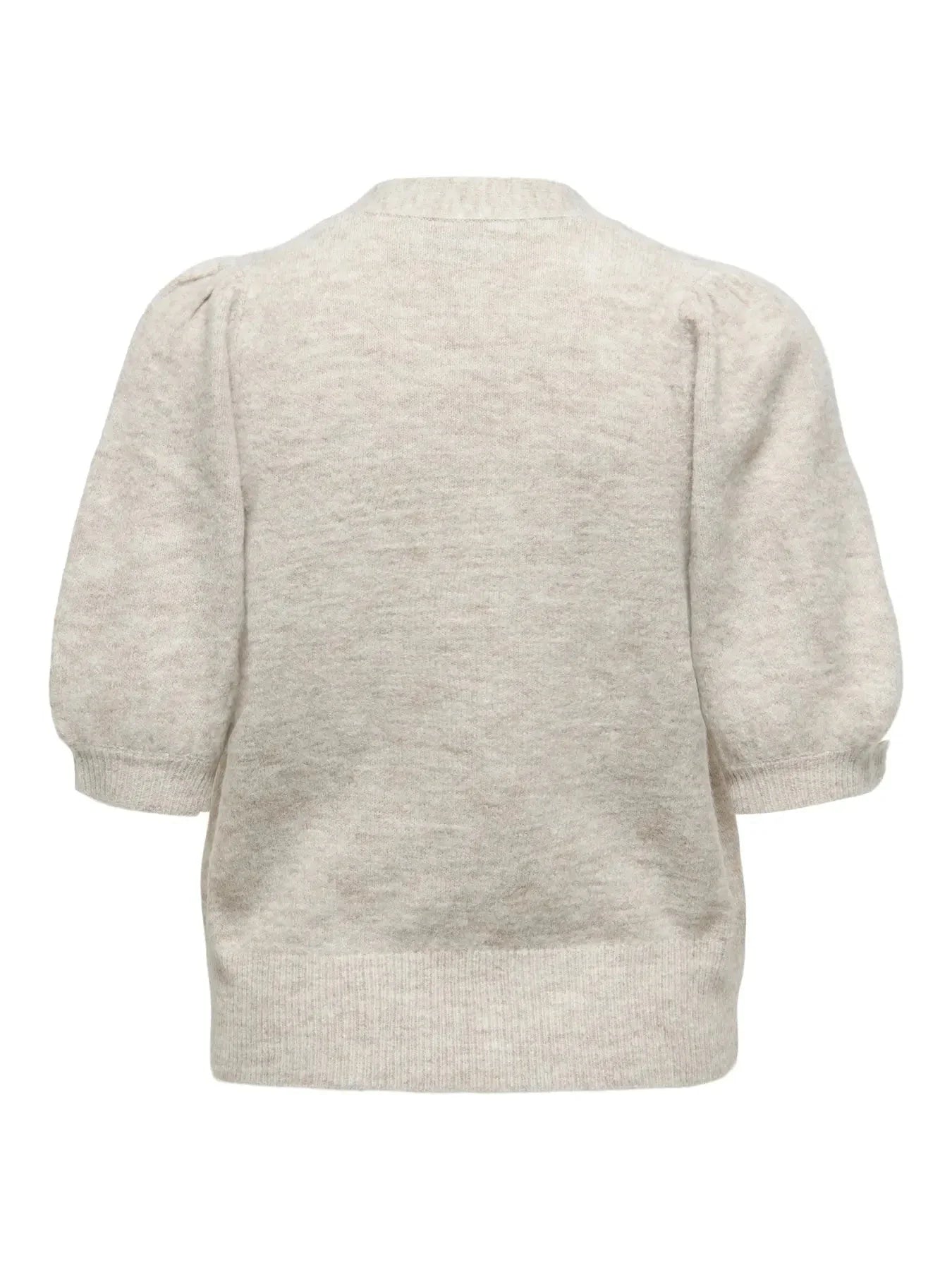 Cardigan från Only i en ljus beige melangefärg. Den har korta ärmar med lätt puffig design och en knäppning framtill.