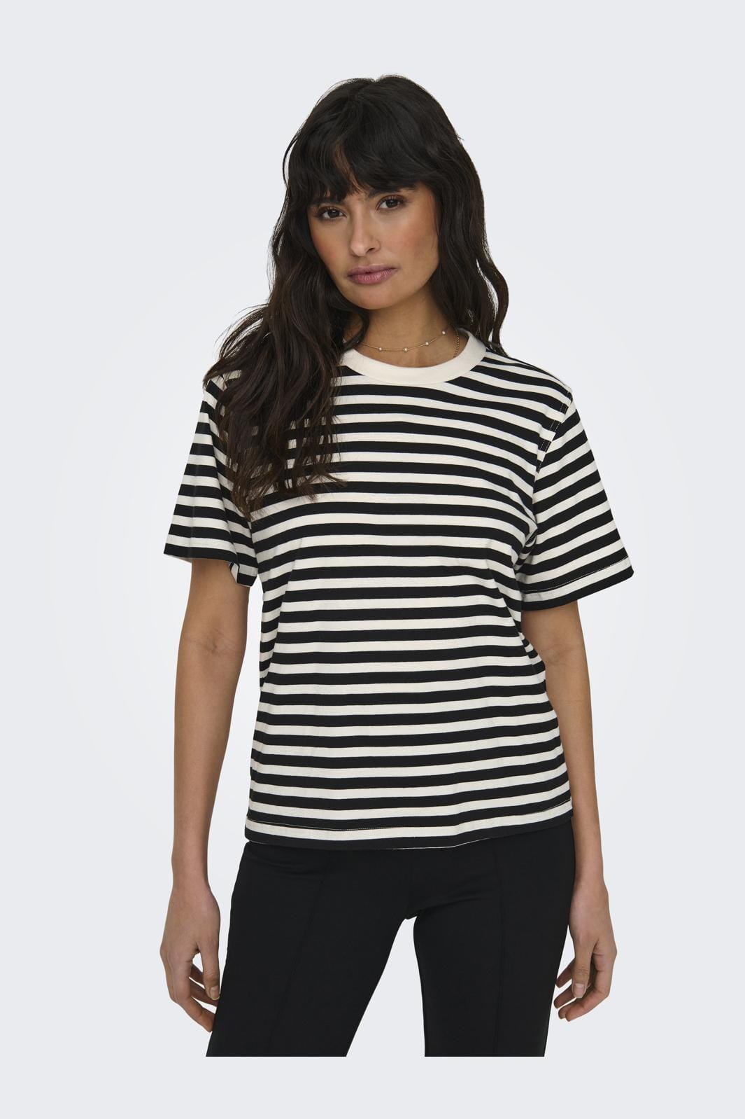 Randig t-shirt från Only i svart och vitt. T-shirten har en rund halsringning och korta ärmar med en regular fit som ger bra rörelsefrihet.