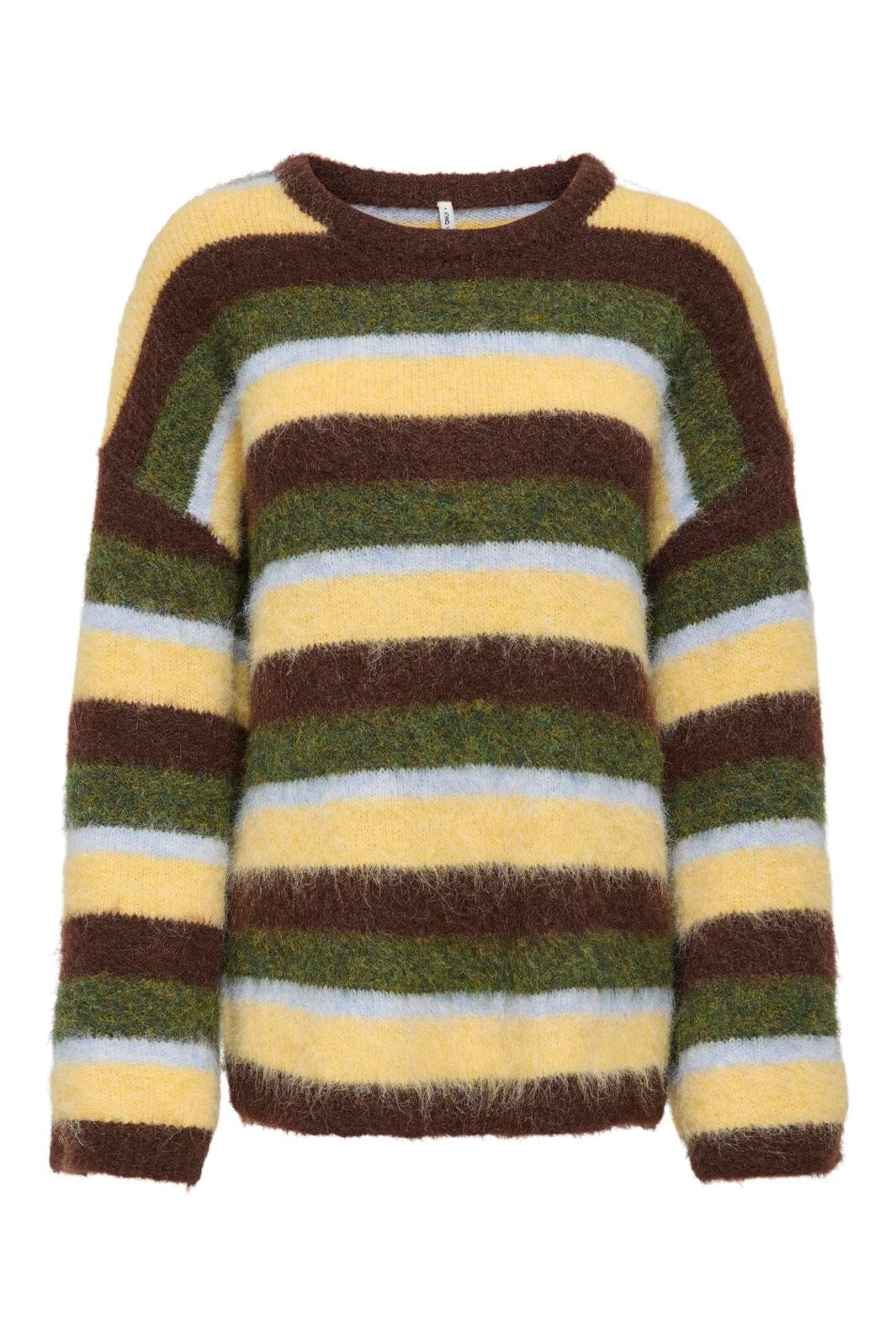 Only Onlperil Life Ls O-Neck Knt Färg: 5020827 Pinecone Olive Branch/Windsurfer/Sunlight