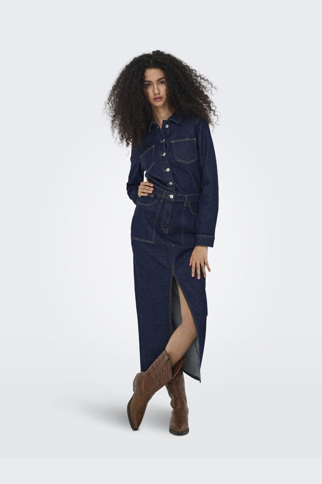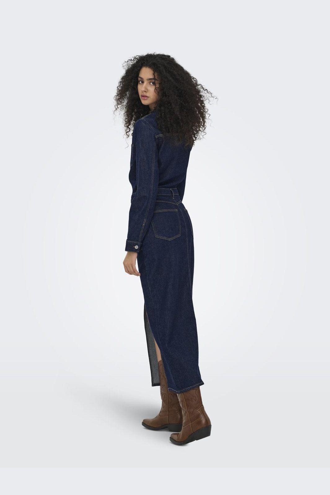 Only Onlphilly Ls Maxi Dress Azg Färg: 4944341 Dark Blue Denim Rinsewash