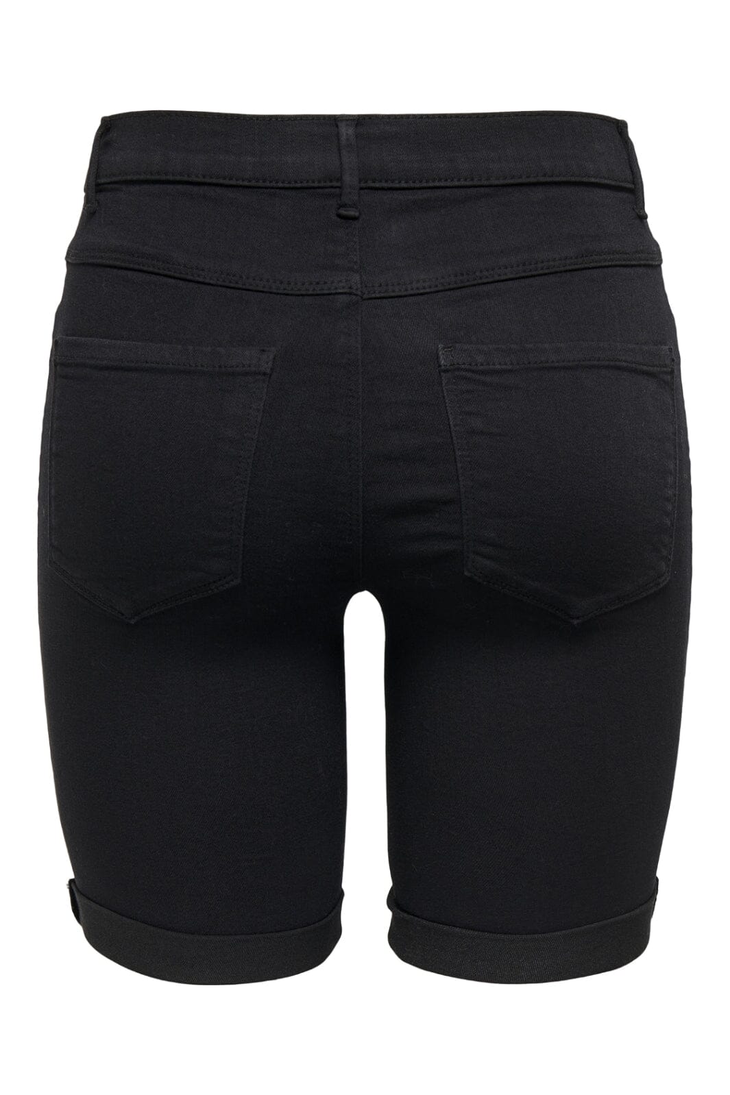 Svarta shorts från Only med medellängd och uppvikta kanter. Shortsen har en tajt passform och är utrustade med både fram- och bakfickor samt bälteshällor.