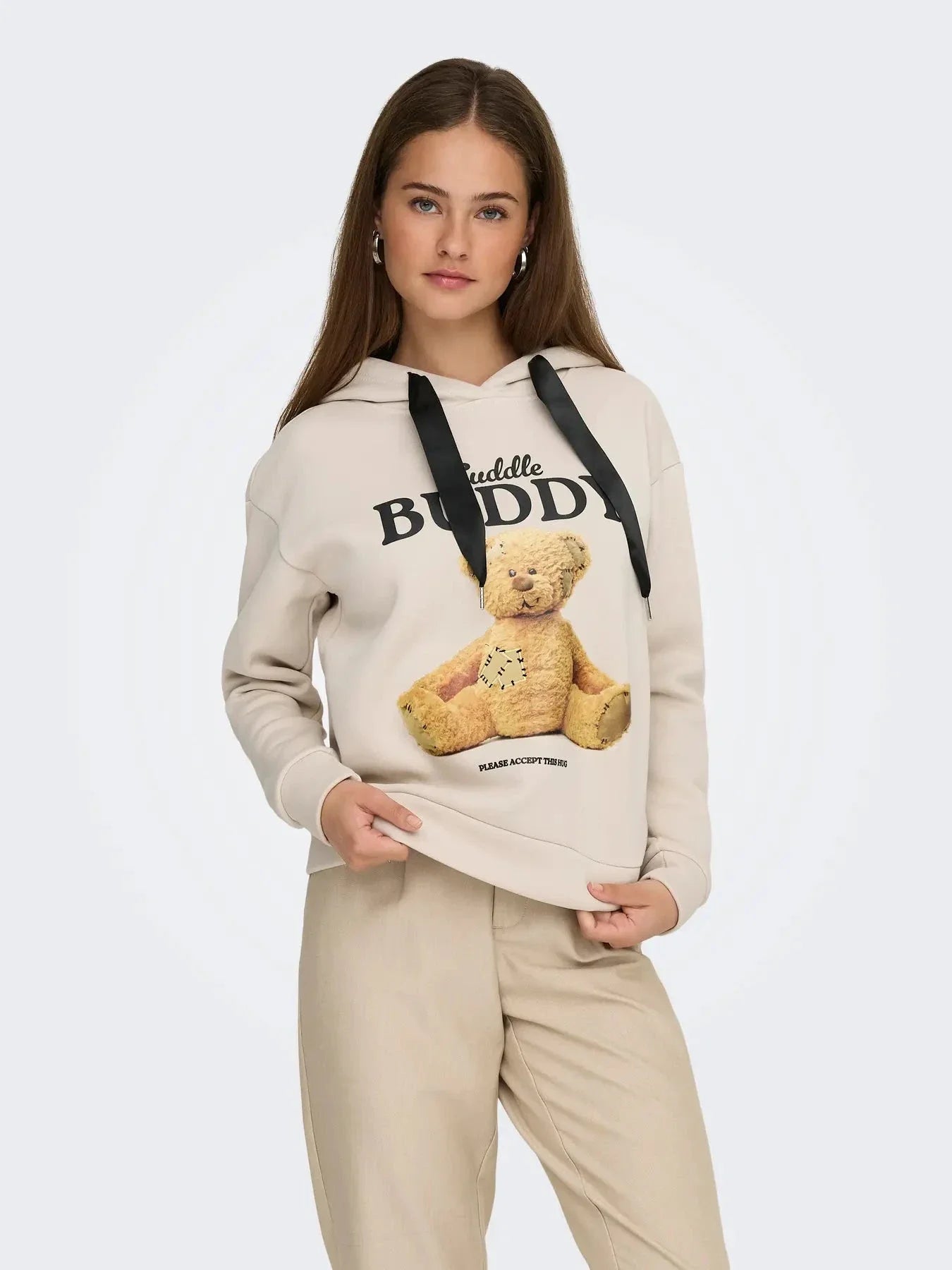 Only Onlricky L/S Hood Box Swt Färg: 4924854 Pumice Stone Buddy + Black Sateen Strings