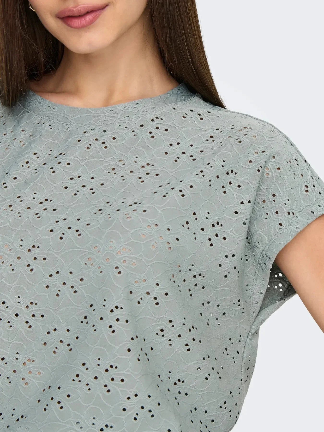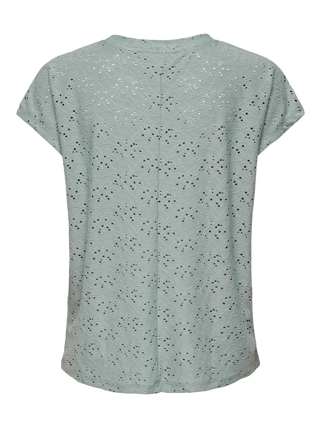 Kortärmad topp från Only i ljus blågrön med hålmönster över hela toppen. Den har en rund halsringning och regular fit-passform.