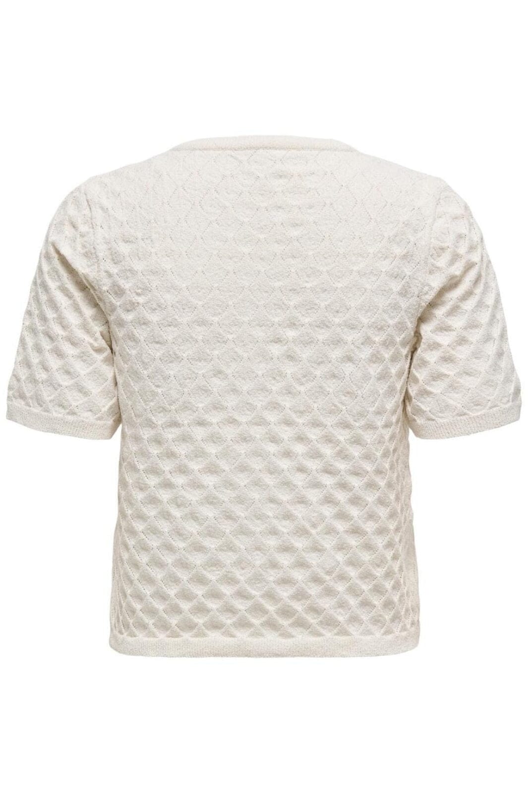 Kortärmad cardigan från Only i en ljus krämvit nyans. Stickad med en strukturerad yta och rund halsringning. Stängs med pärlknappar fram.