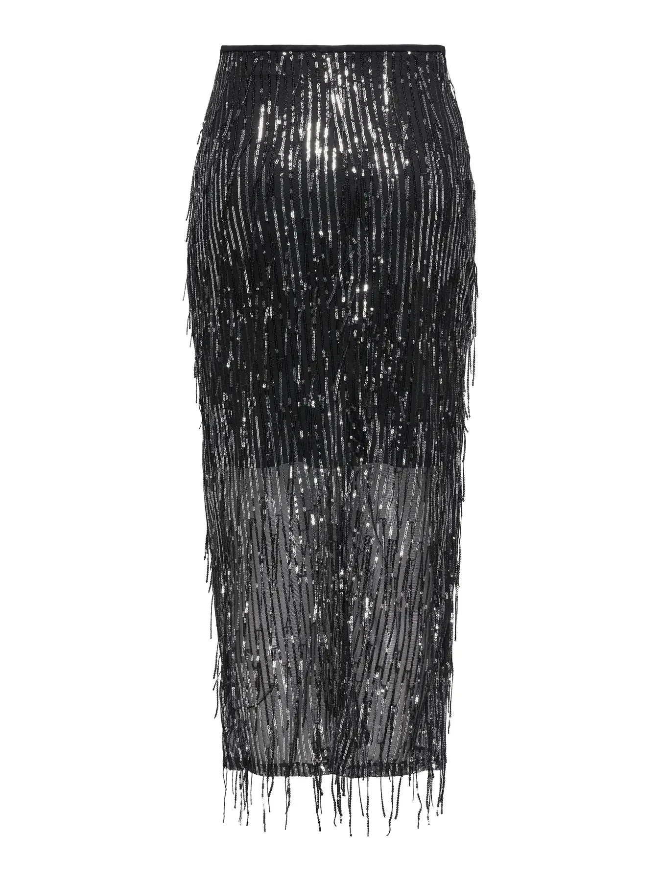 Only Onlspacy Long Sequins Skirt Färg: 4877211 Black W. Silver Sequins