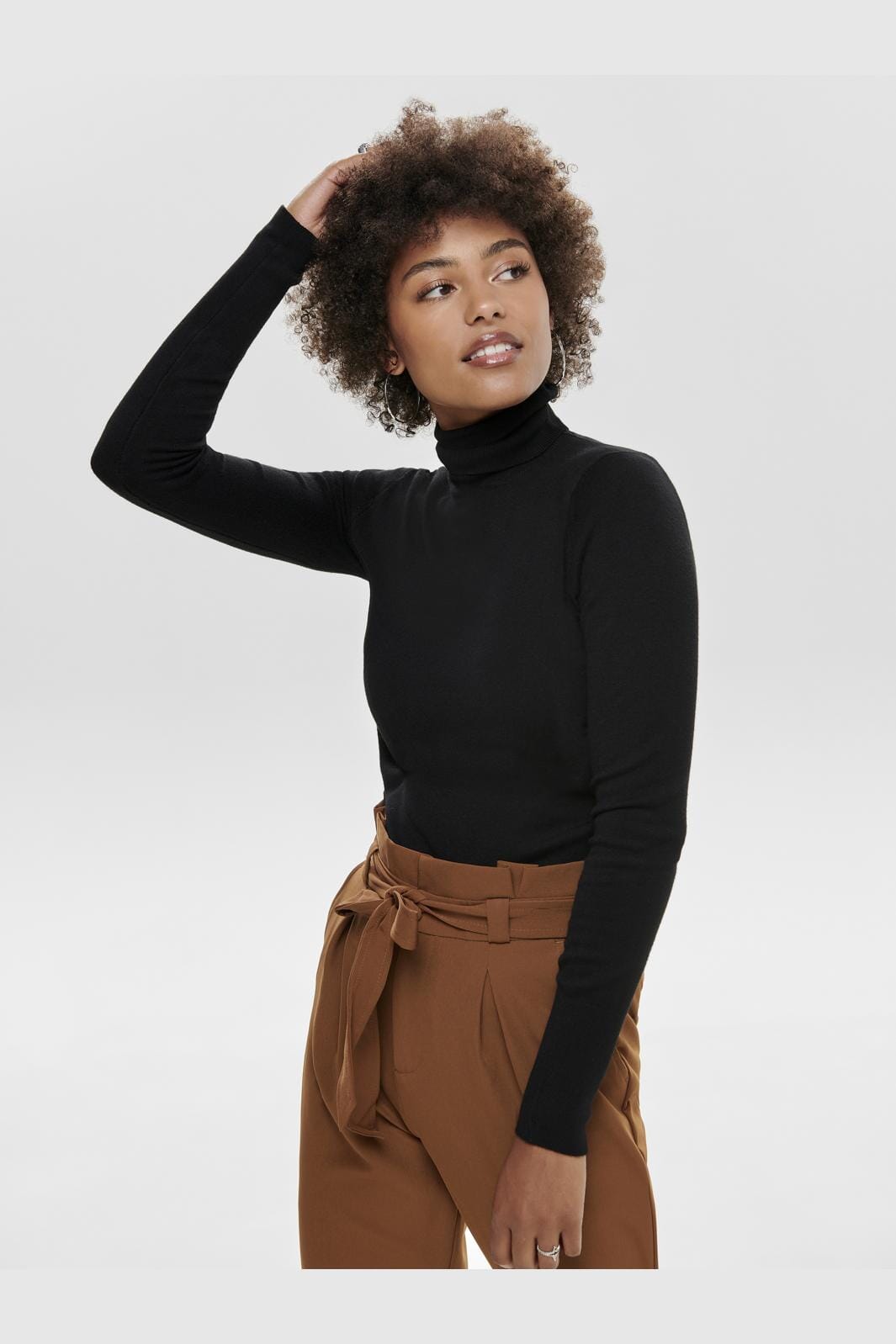 Svart rullkragepullover från Only med hög hals och långa ärmar. Stickad tröja med regular fit, tillverkad i en mjuk materialblandning.