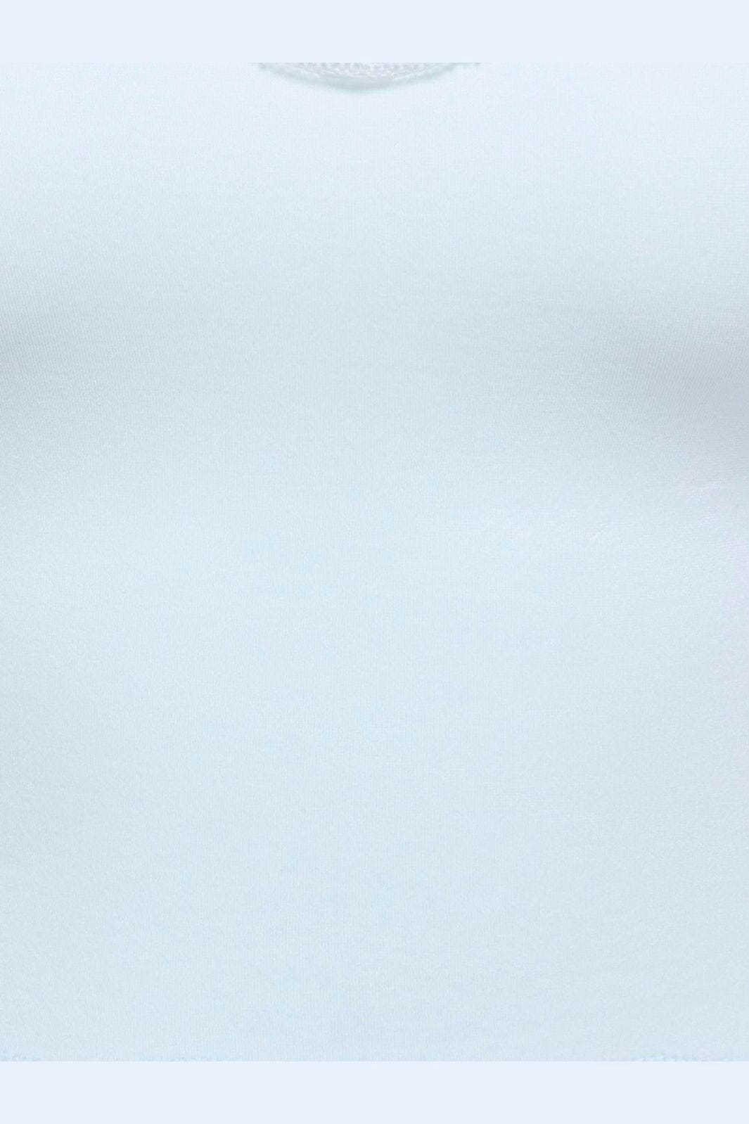 Ljusblå cropped topp från Only med spetsdetaljer. Toppen har en v-ringning med spetskant och tunna axelband. Den sömlösa designen ger en figurnära passform.