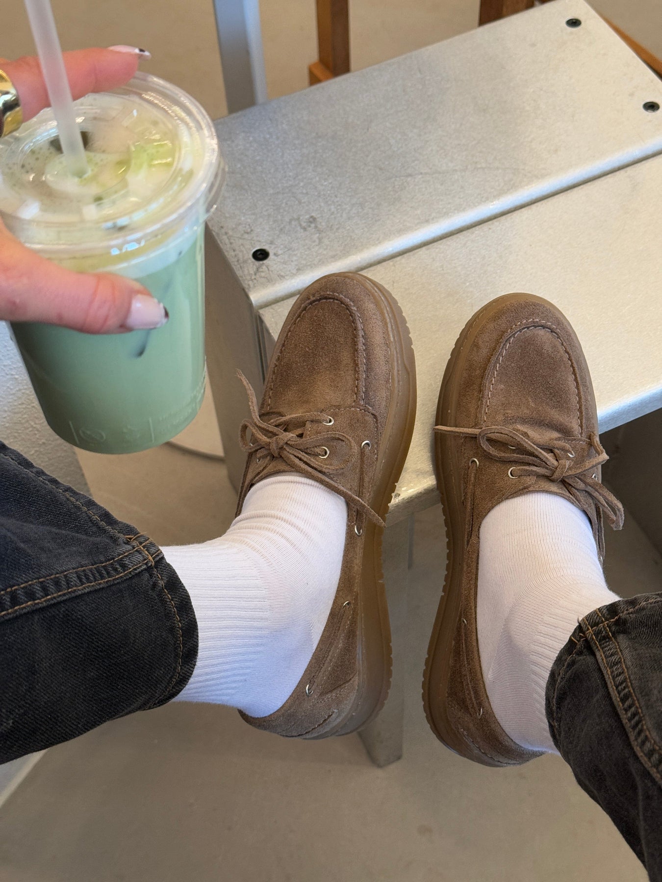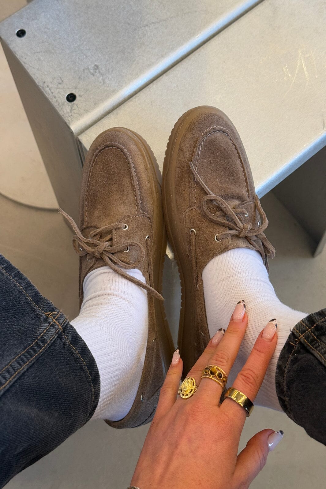 Bruna skor från Phenumb Copenhagen i mocka med rund tå och snörning. Skon har en låg klack och en solid konstruktion som gör den praktisk för vardagsbruk.