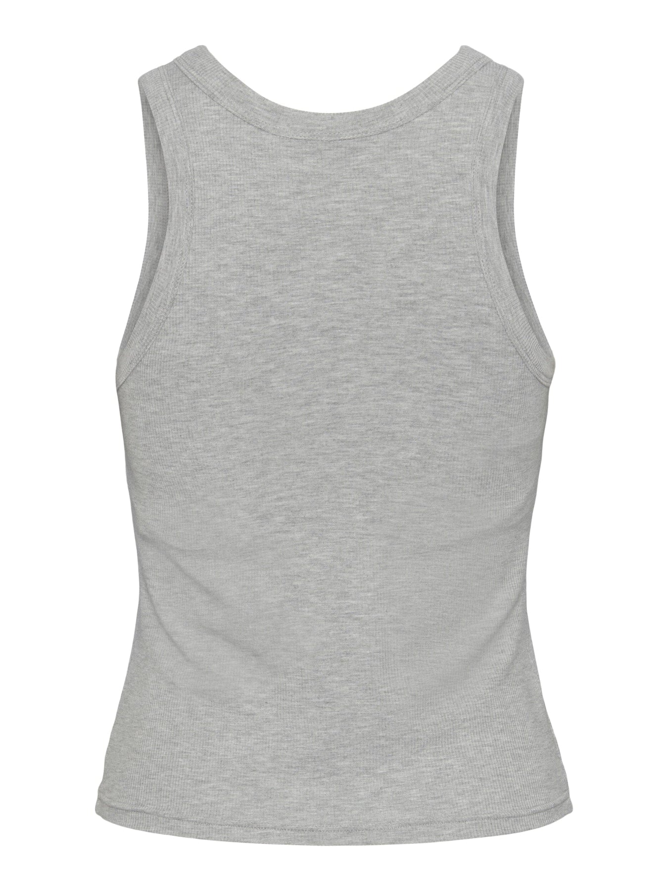 Ljusgrå bra-top från Pieces med tight passform. Den ärmlösa toppen har en rund halsringning och är tillverkad i ett stretchigt material som ger bra rörelsefrihet.