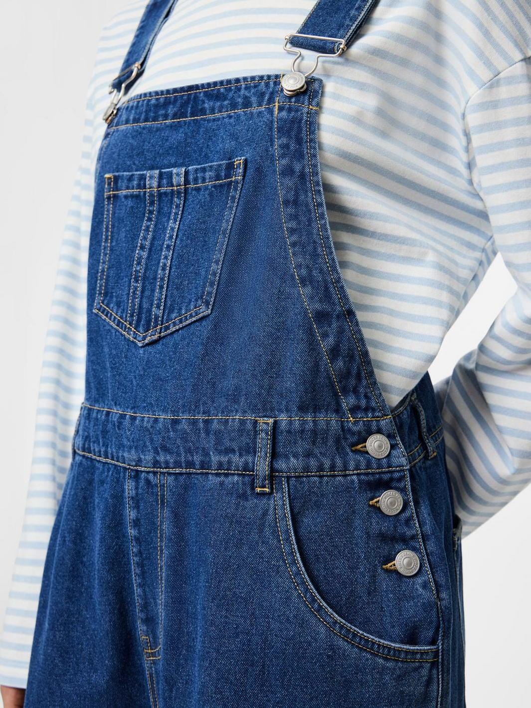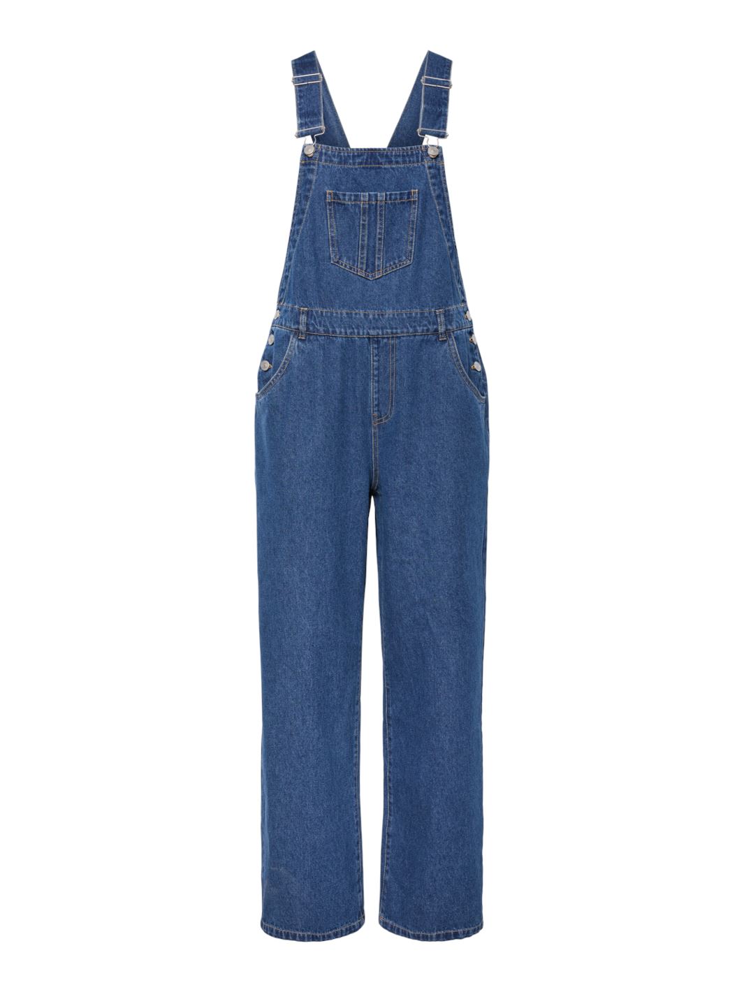 Denim-overall från Pieces i mörkblå denim med stark bomullsblandning. Overallen har en loose fit-passform med spänneknäppning och praktiska fickor både fram och bak.