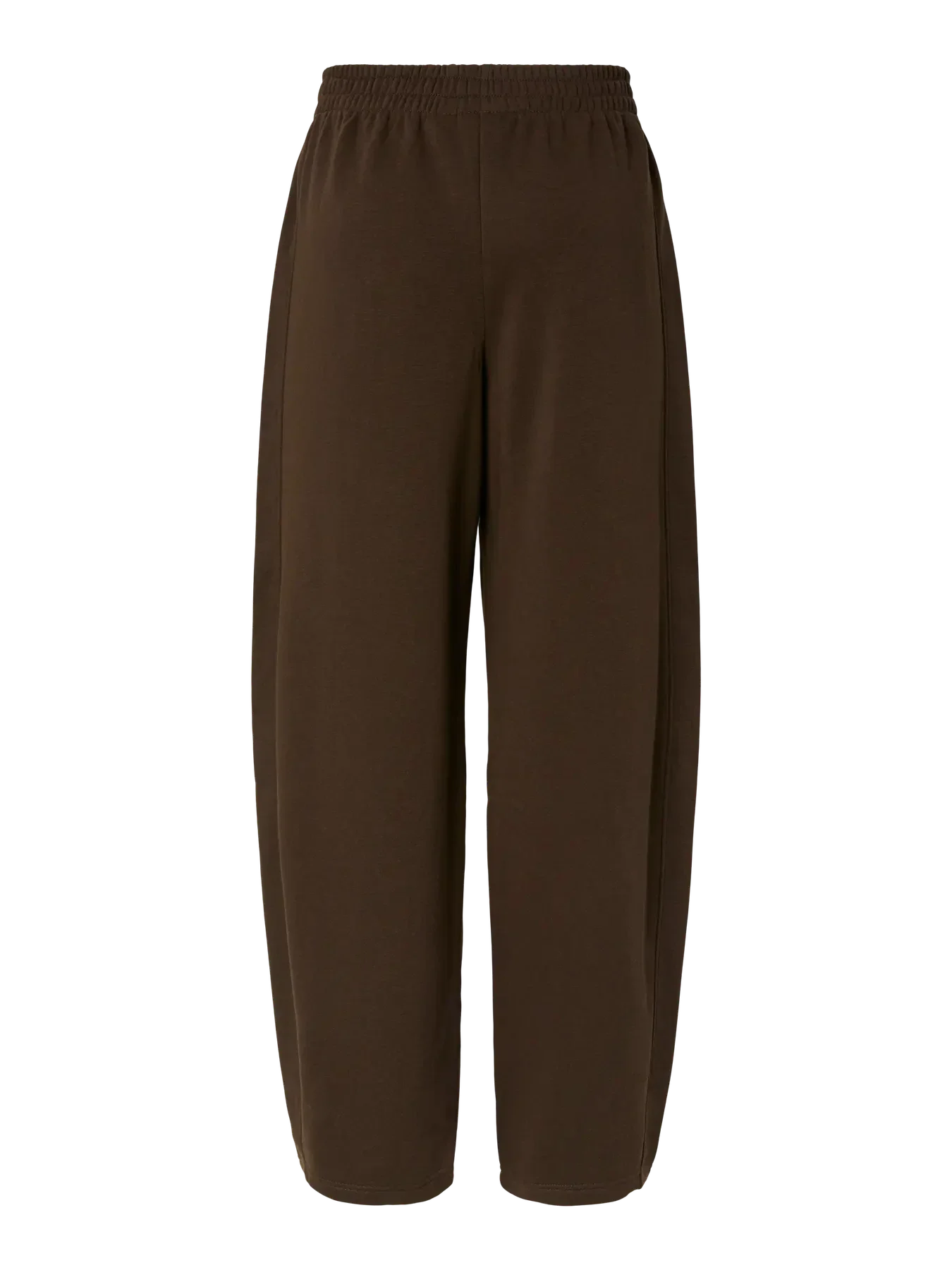 Bruna barrelbyxor från Pieces, tillverkade av en blandning av bomull och polyester. Byxorna har normal midjehöjd och en lös passform.