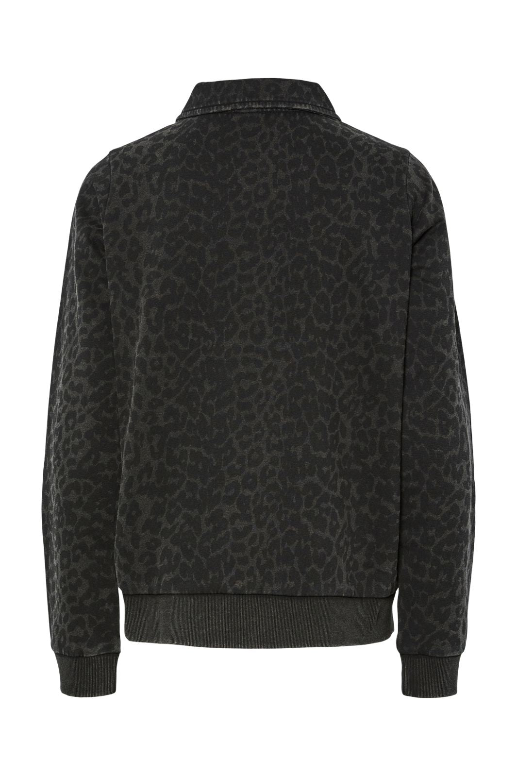 Långärmad polo från Pieces med leopardmönster i svart och acid wash-finish. Polon har ribbstickade manschetter och en treknapps stolplåsning fram.