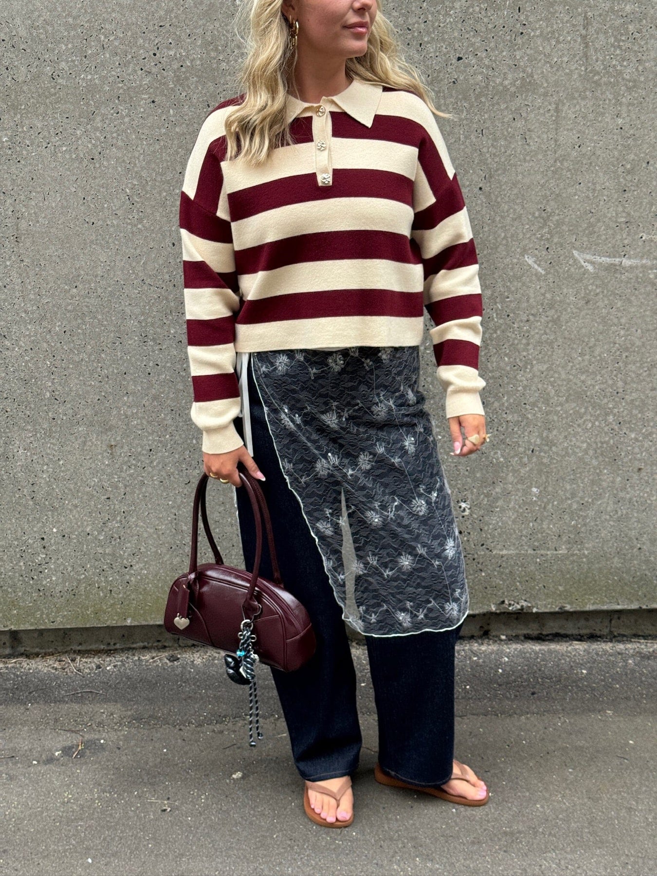 Pieces Pcjassy Ls Short Polo Knit Färg: 5040020 Winetasting Birch