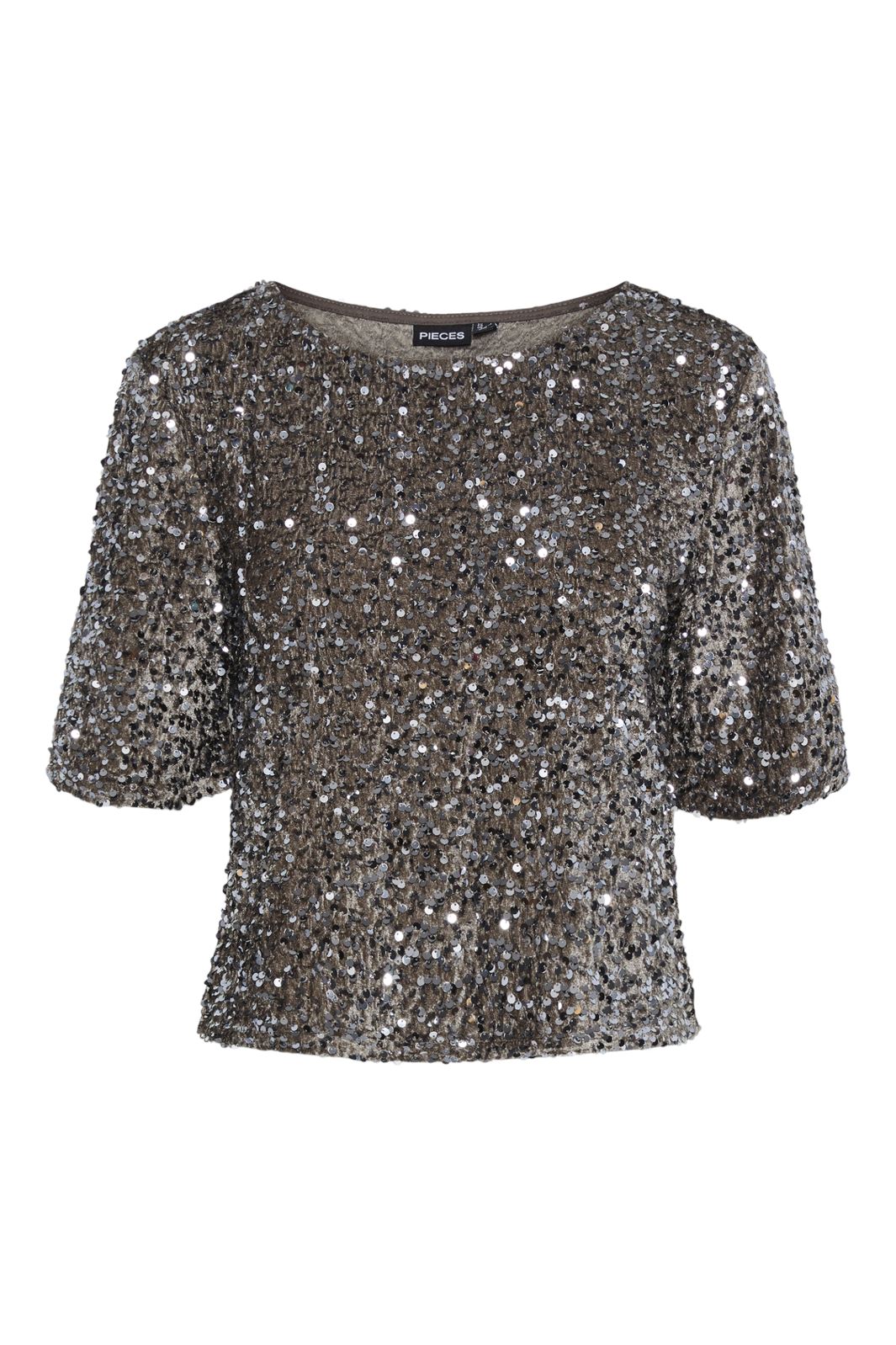 Pieces Pckam Ss Top Färg: 4641548 Morel Silver Sequins