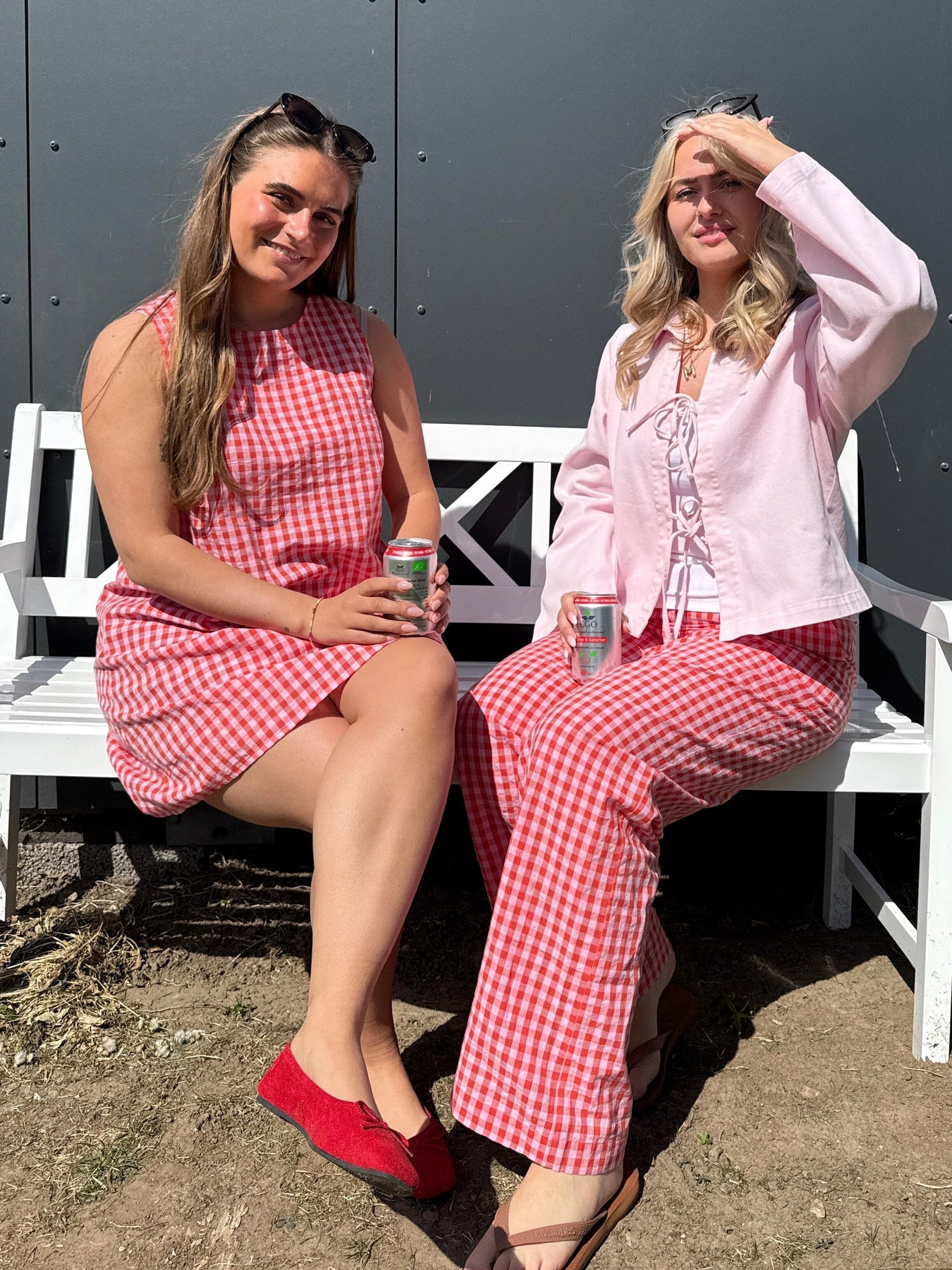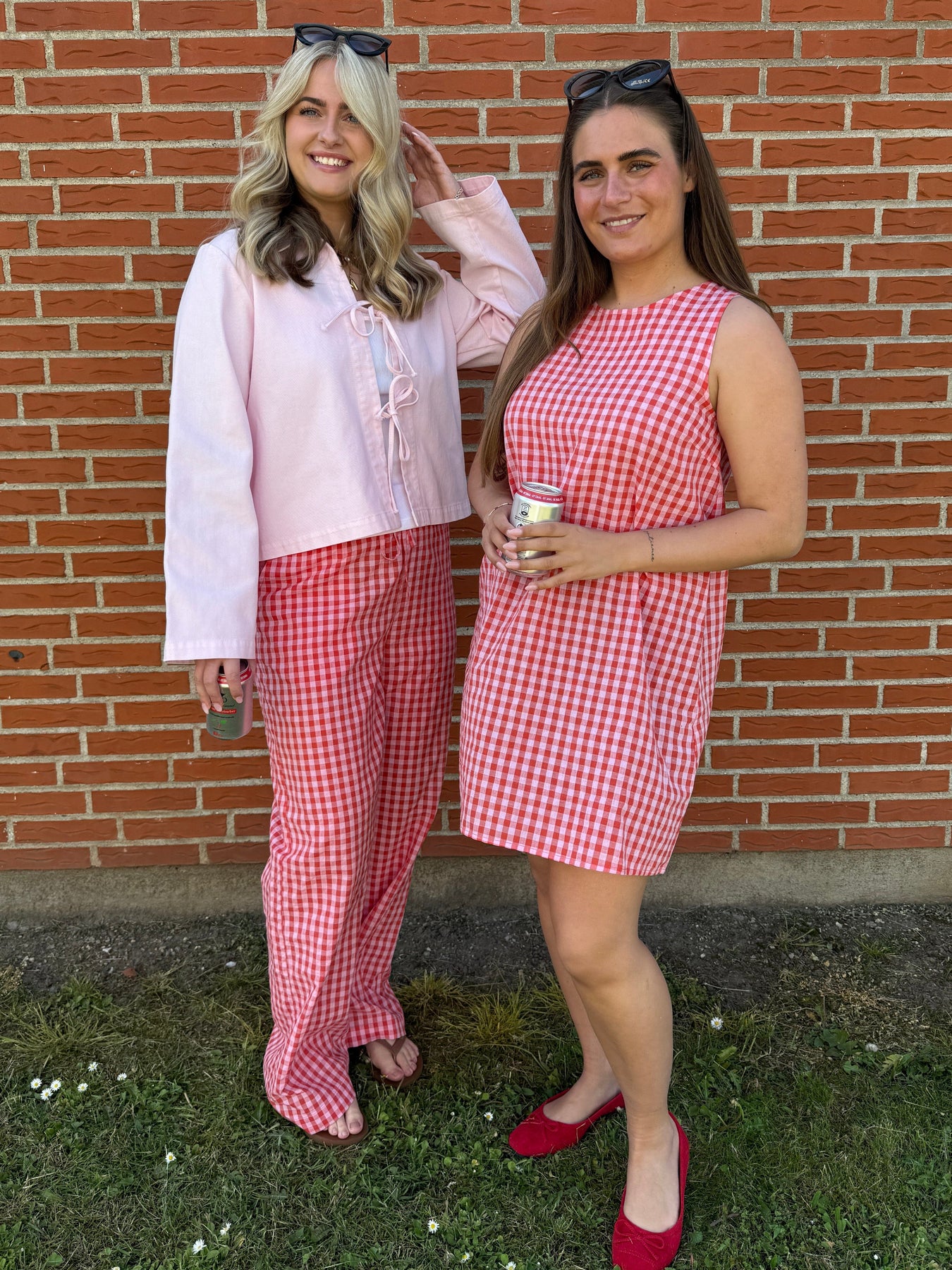 Kort klänning från Pieces i röd och vit med rutigt gingham-mönster. Den ärmlösa klänningen har en rund halsringning och rak passform.