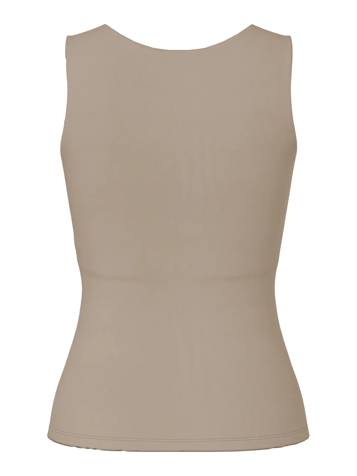 Vändbar tanktopp från Pieces i en neutral greige nyans. Tanktoppen har en fyrkantig halsringning framtill och en hög halsringning baktill.
