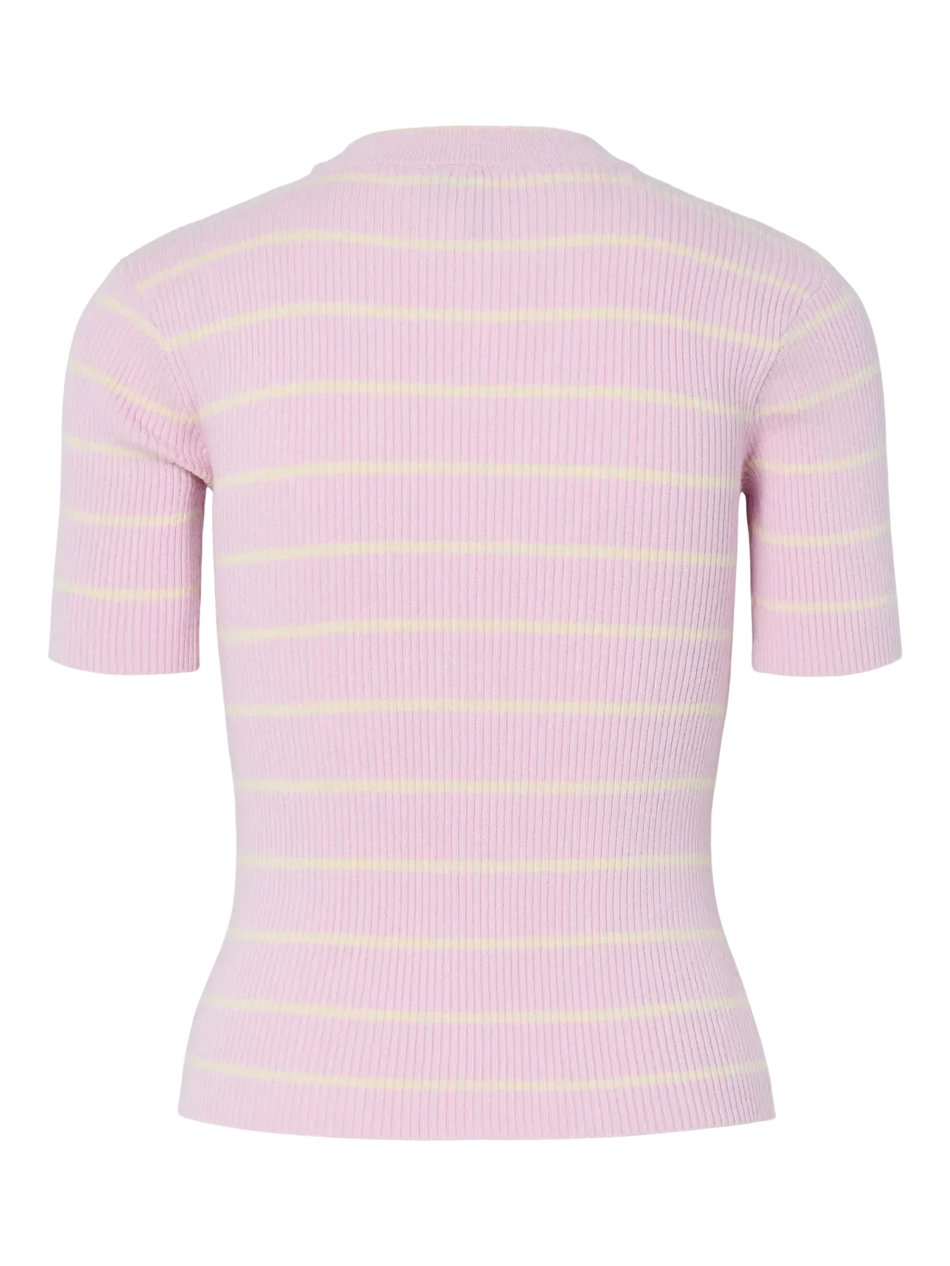 Stickad topp från Pieces i ljuslila med rosa ränder. Toppen har korta ärmar, en rund halsringning och en figurnära passform.