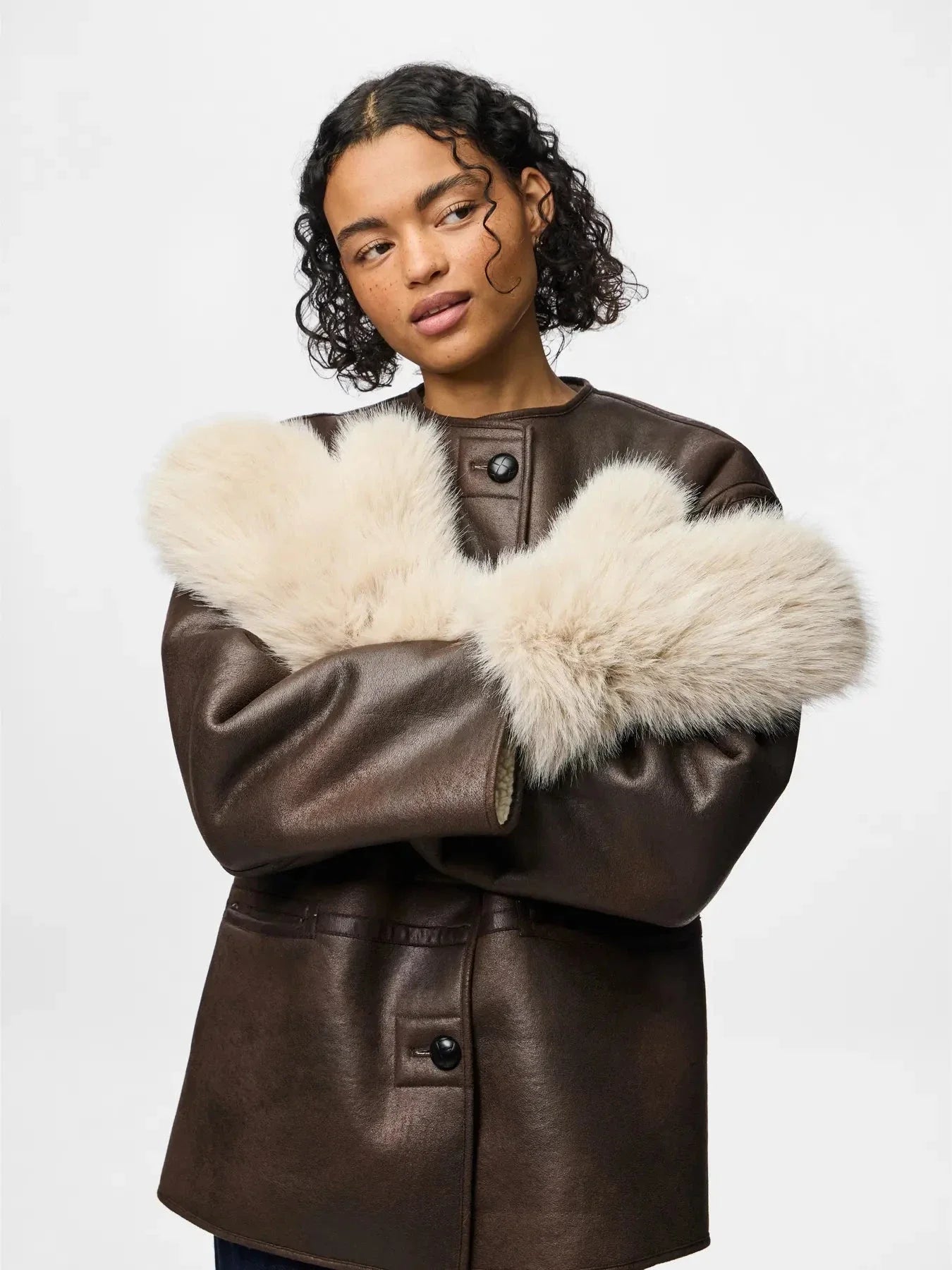 Pieces Pcplush Fluffy Mittens Färg: 5023212 Porpoise Patchwork