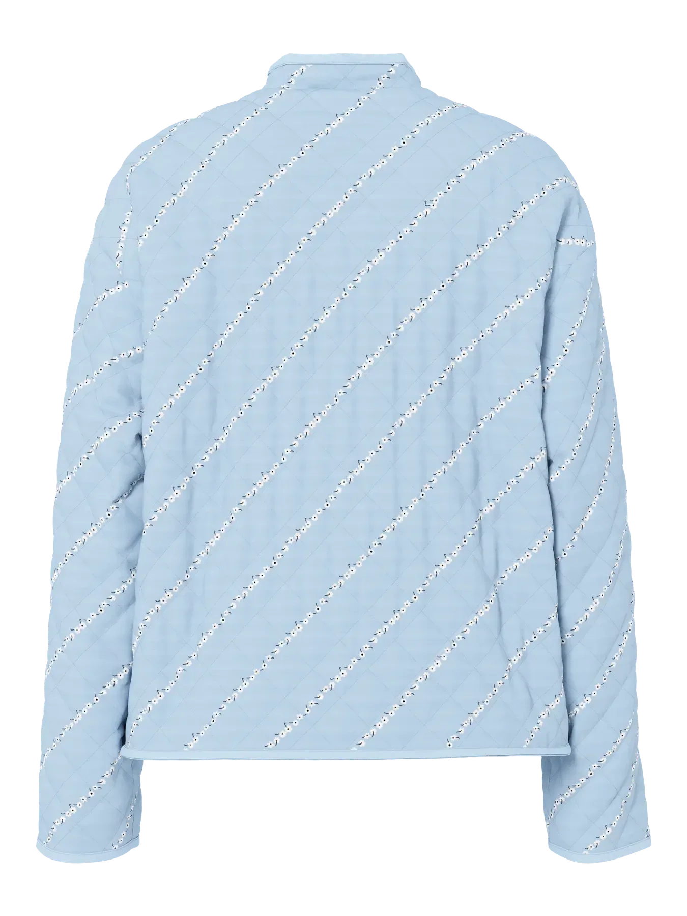 Quiltad jacka från Pieces i en ljusblå nyans med ett mönster av blommor, ränder och rutor. Jackan är tillverkad av 100 % viskos.