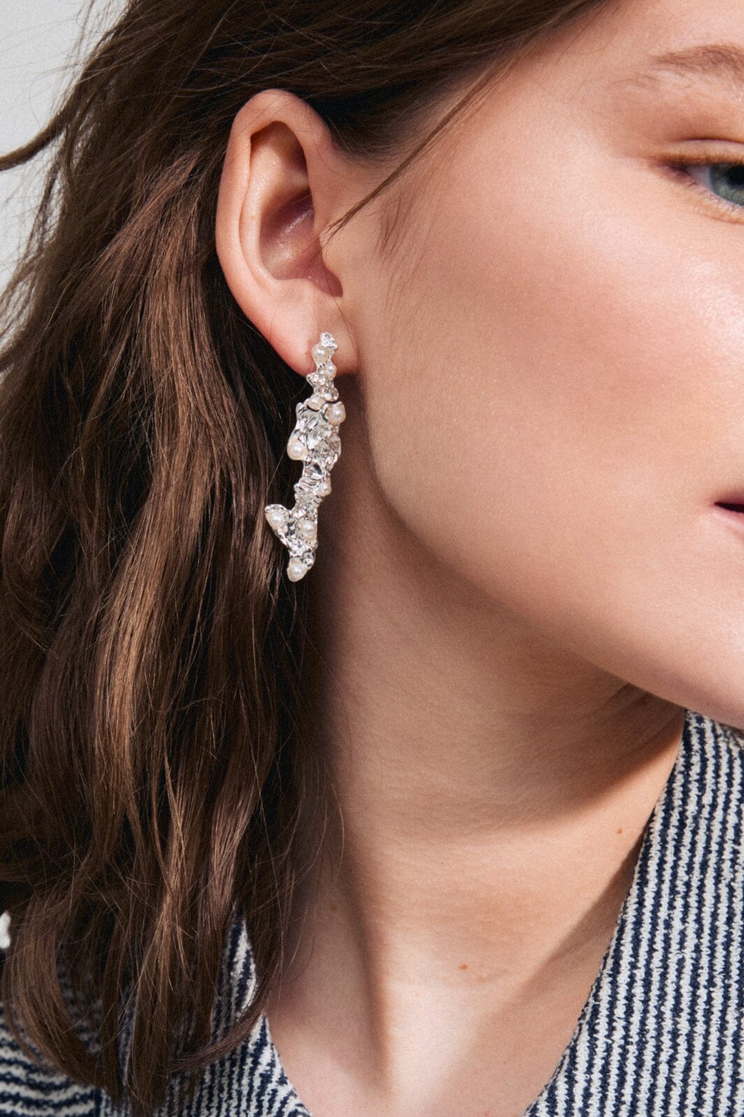 Söljbelagda örhängen från Pilgrim med organisk form och pärlliknande detaljer. Den texturerade ytan skapar en särskild design med små runda element genom hela smycket.