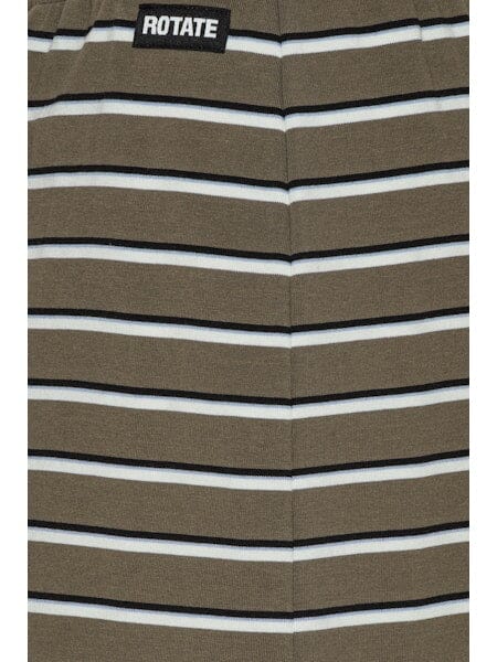 Jerseykjol från Rotate i en randig khakigrön nyans. Kjolen har hög midja och en slim fit-passform.