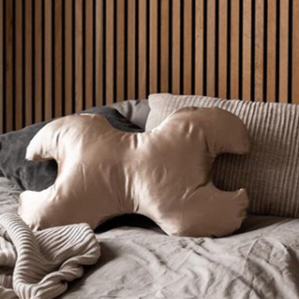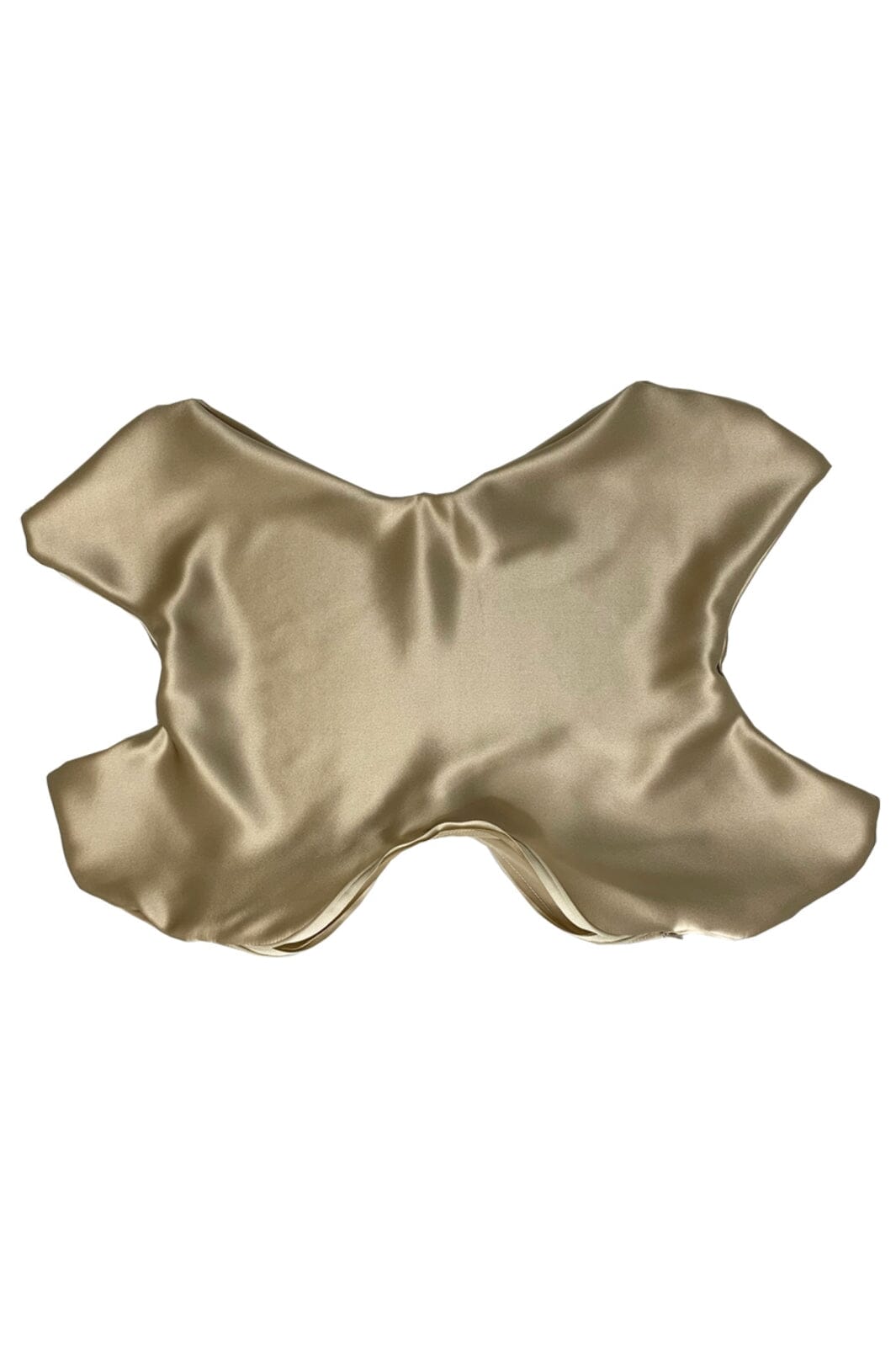 Kuddfodral från Save My Face i bronssilke med X-form. Fodralet har en slät yta och är tillverkat av charmeuse-silke med naturliga, hudvänliga egenskaper.