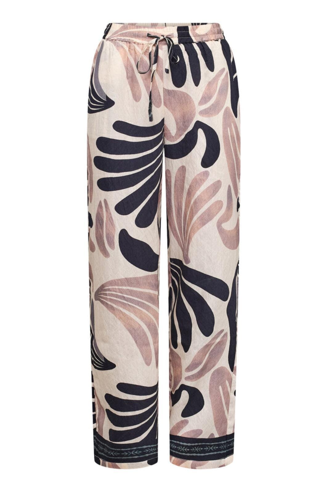 Byxor från Sisters Point med ett abstrakt print i bruna, beige och svarta nyanser. Byxorna har en design med vida ben och en lös passform.