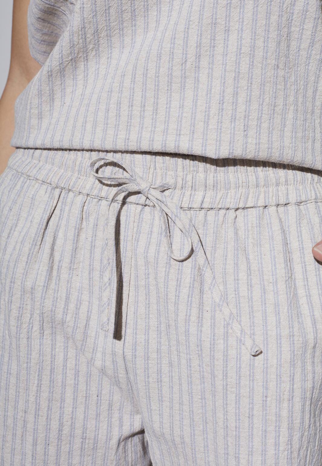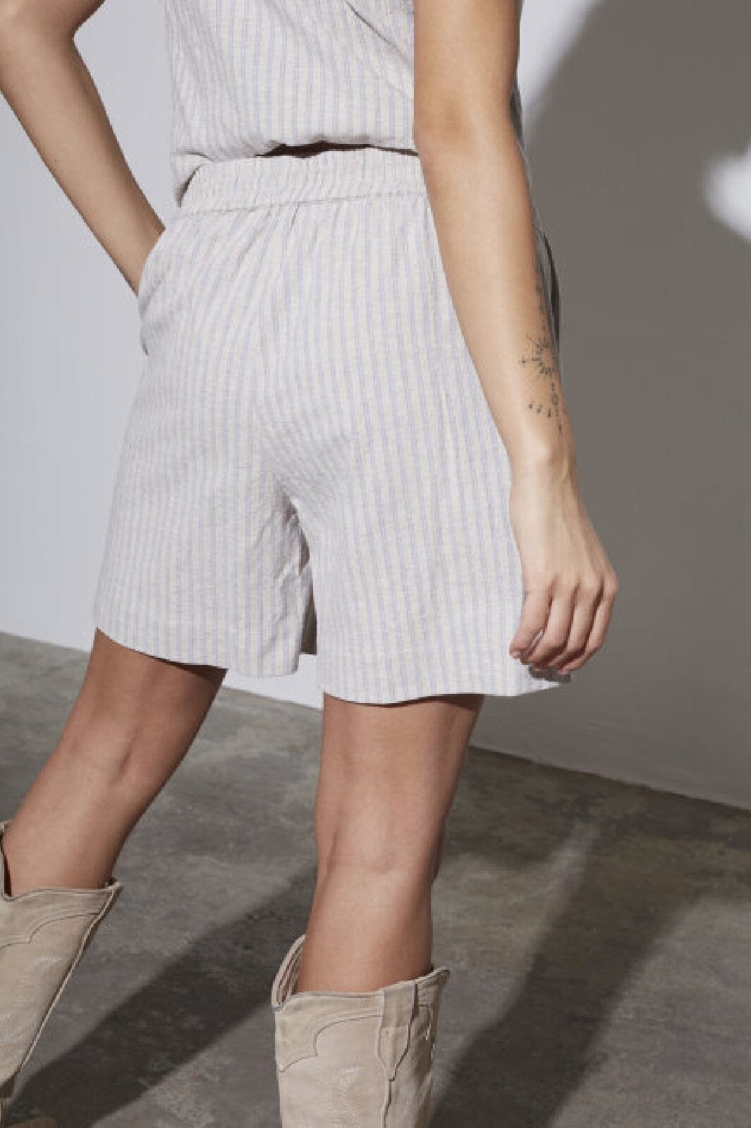 Randiga shorts från Sisters Point i ljusblå och beige nyanser. De har en bekväm regular fit och är gjorda av en lätt blandning av bomull och linne.