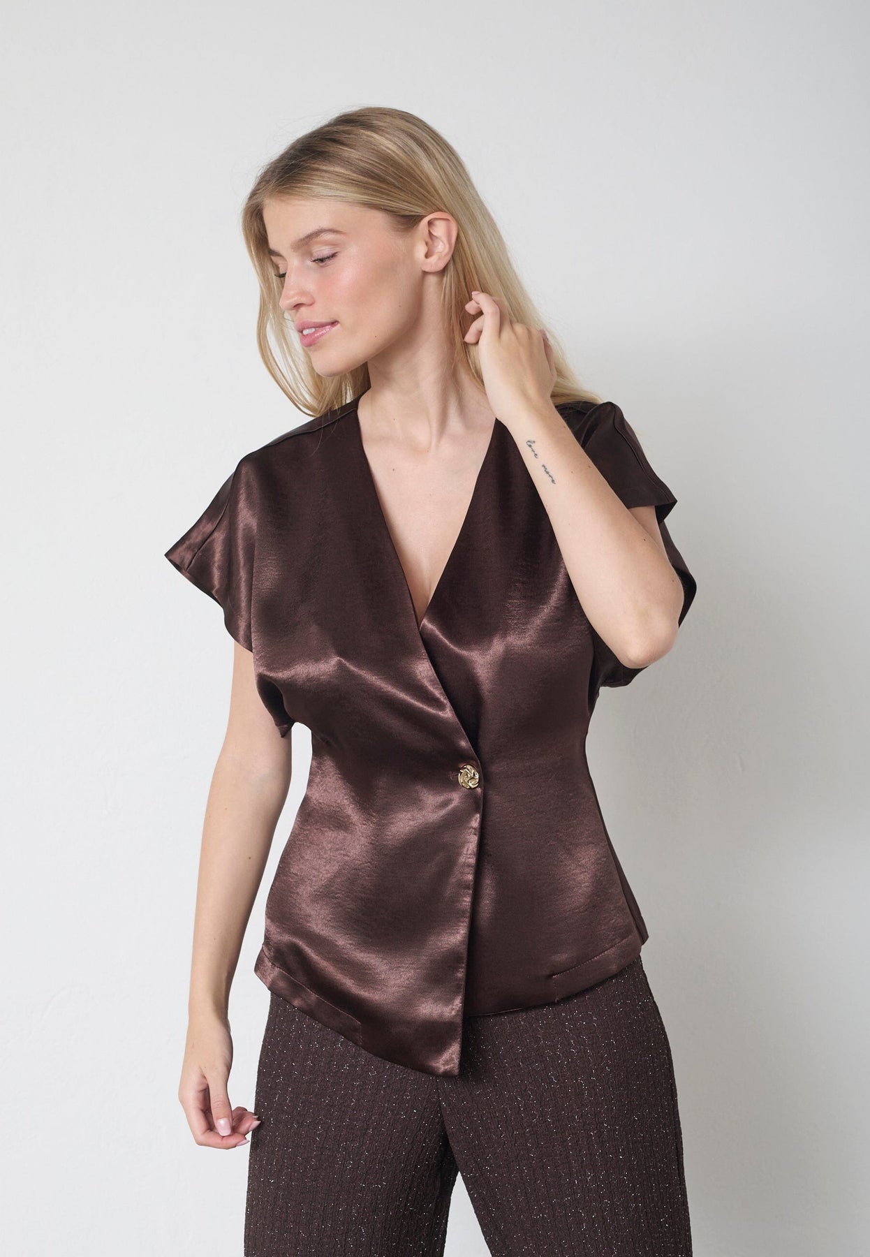 Brun topp från Sisters Point i 100 % polyester. Toppen passar för formella tillställningar och festliga tillfällen.