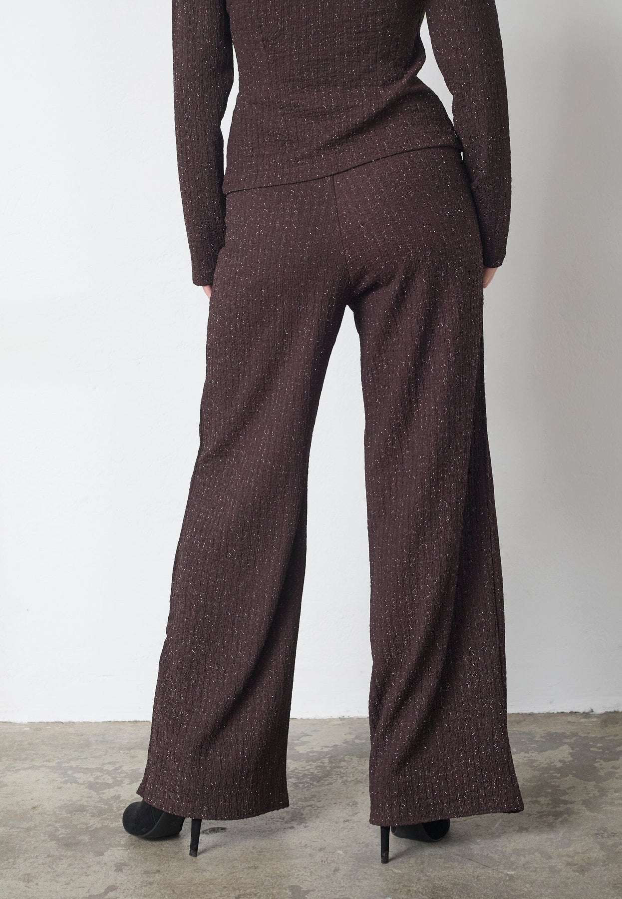 Byxor från Sisters Point i brun färg med silverglitter. Byxorna passar både för festliga och formella tillfällen.