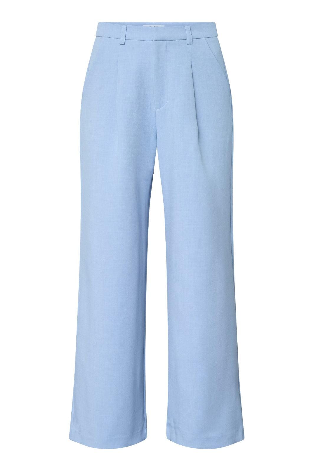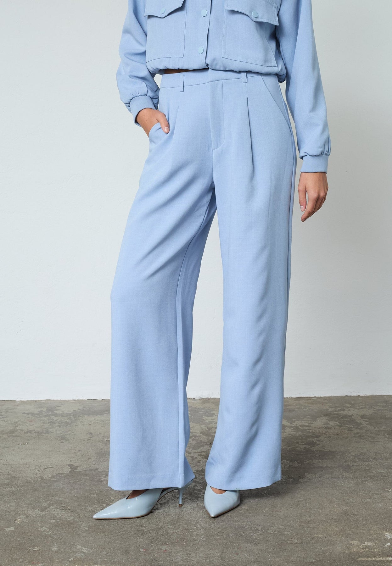 Ljusblå byxor från Sisters Point med lös passform och vida ben. Byxorna har hög midja och är hellånga.